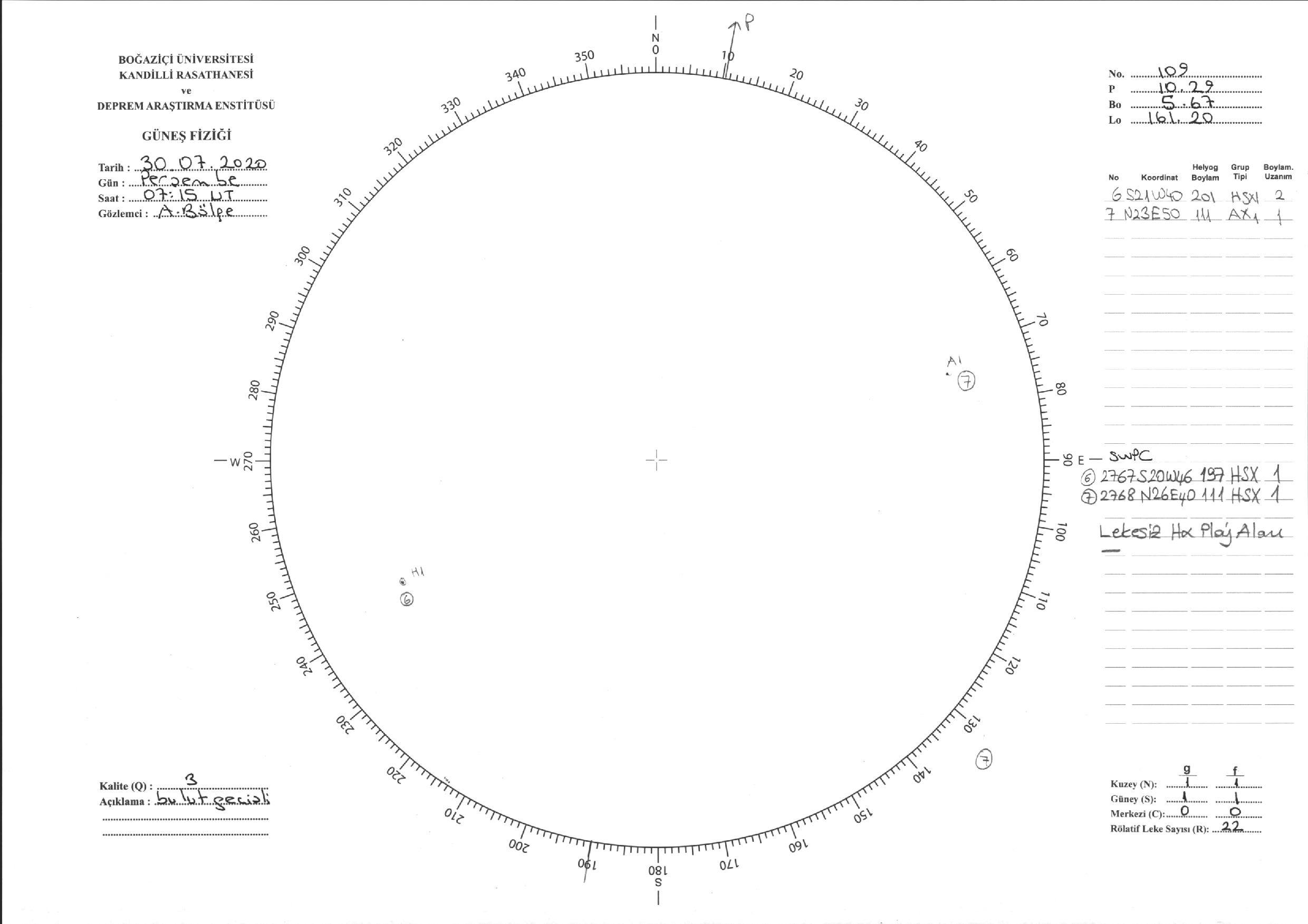Güneş Lekesi Çizimi - 30.07.2020