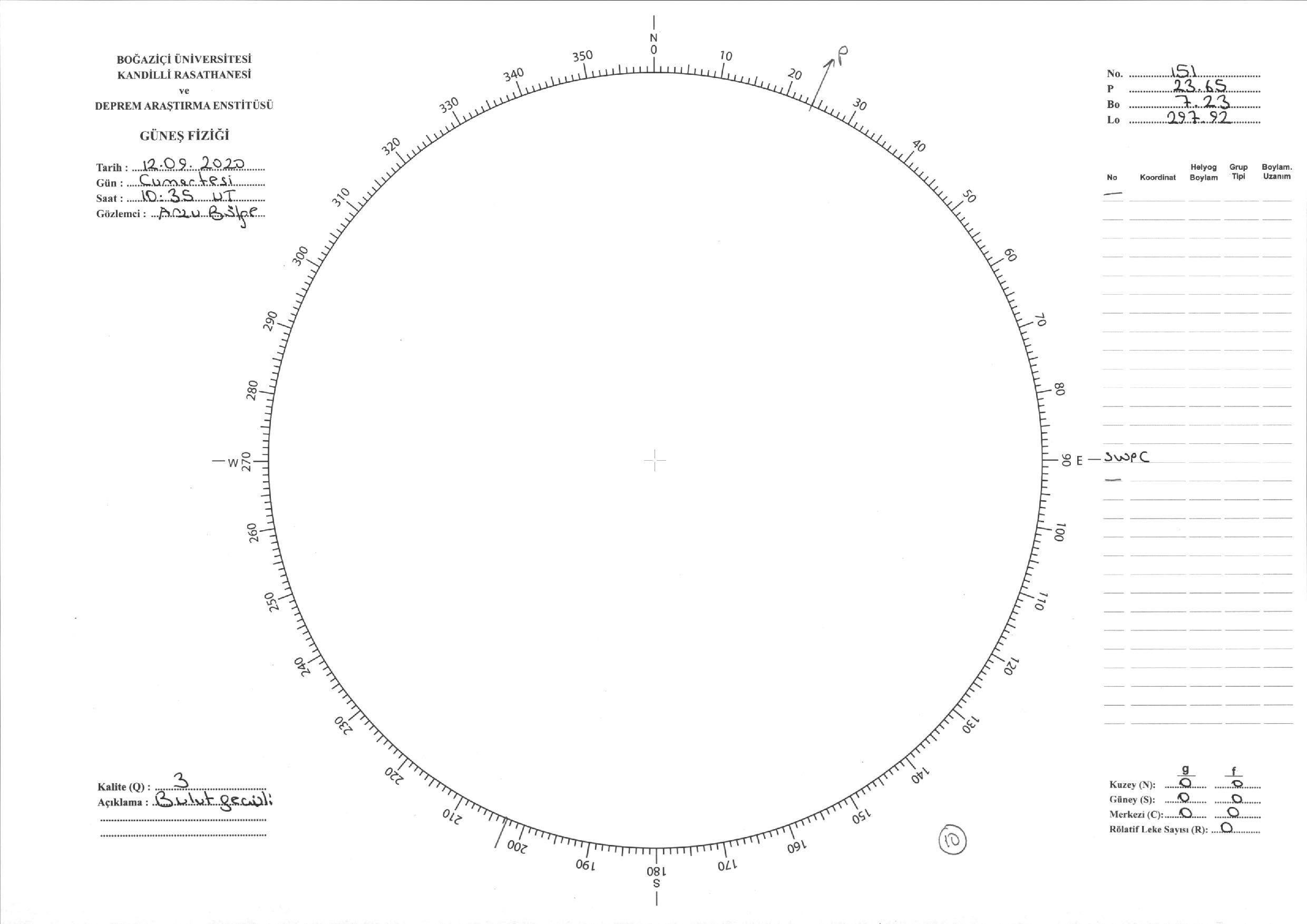Güneş Lekesi Çizimi - 12.09.2020
