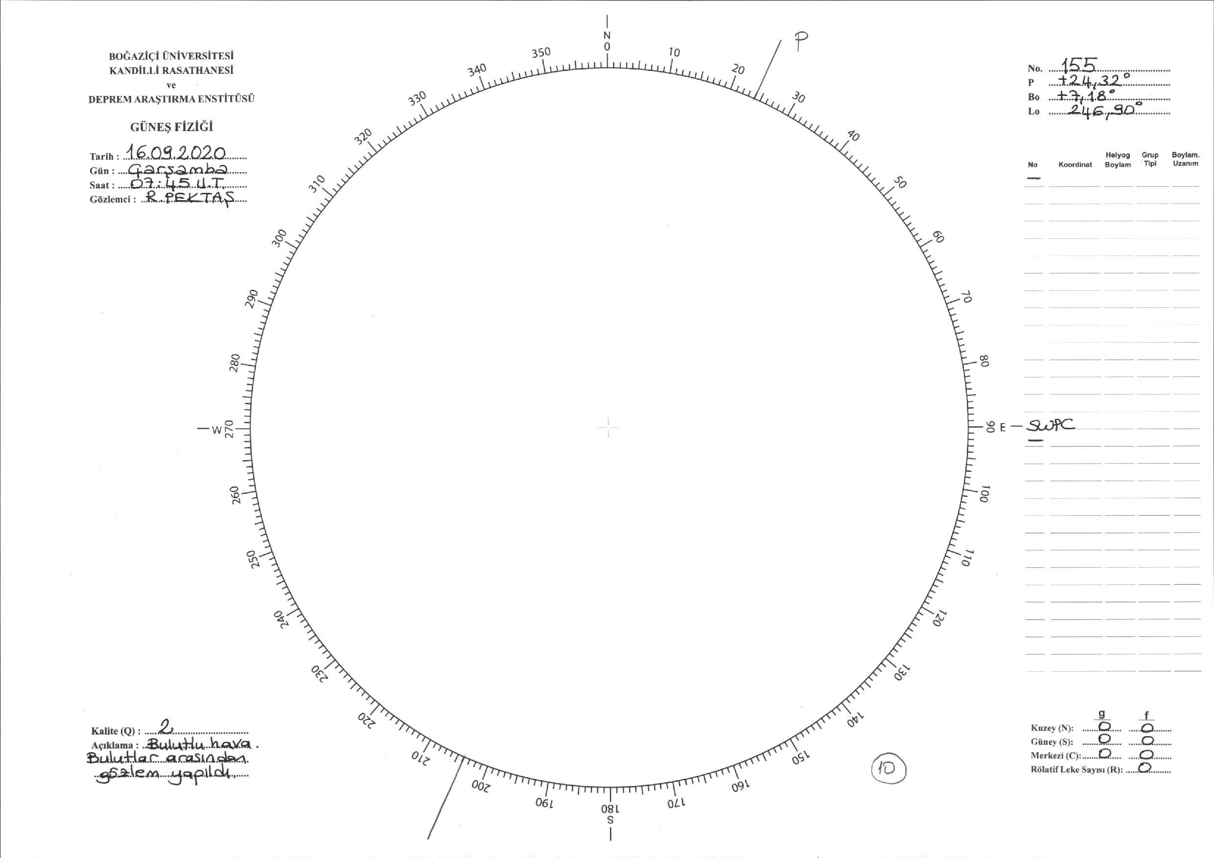 Güneş Lekesi Çizimi - 16.09.2020