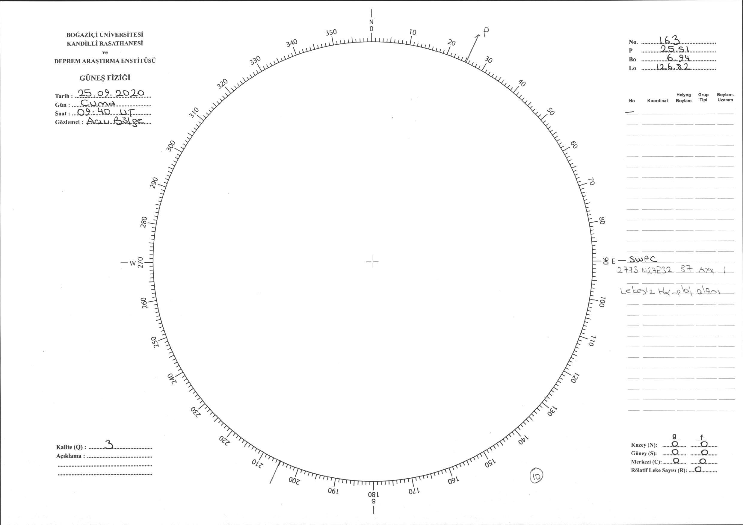 Güneş Lekesi Çizimi - 25.09.2020