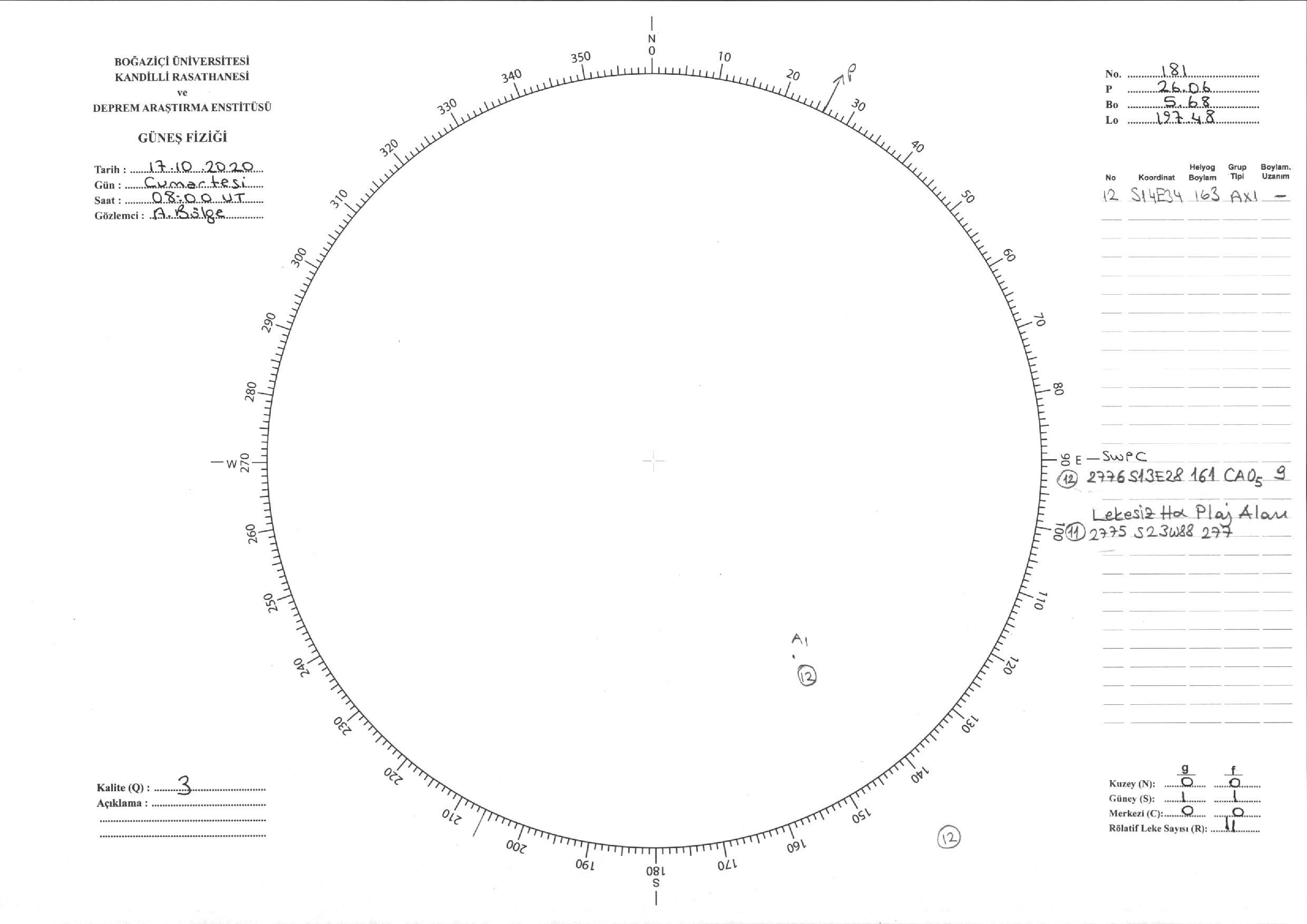 Güneş Lekesi Çizimi - 17.10.2020