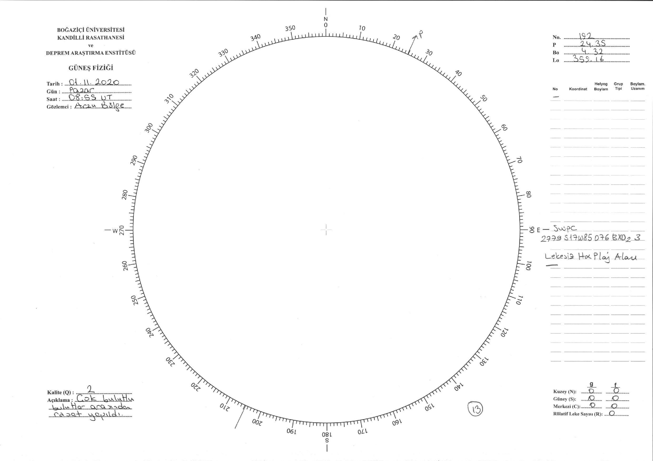 Güneş Lekesi Çizimi - 01.11.2020