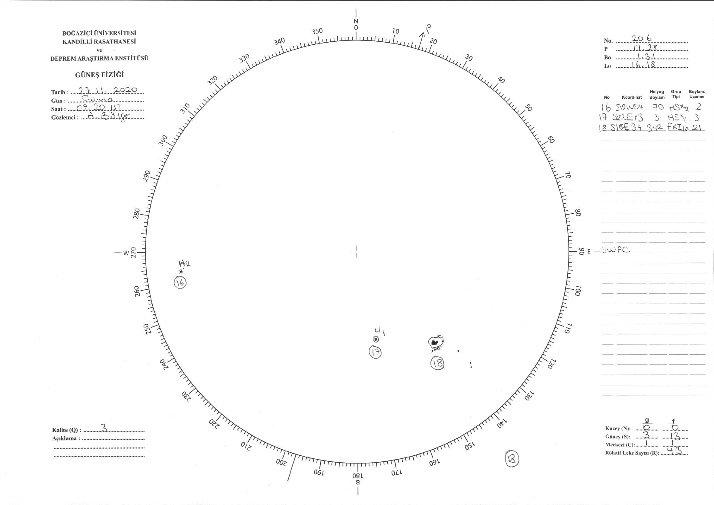 Güneş Lekesi Çizimi - 27.11.2020
