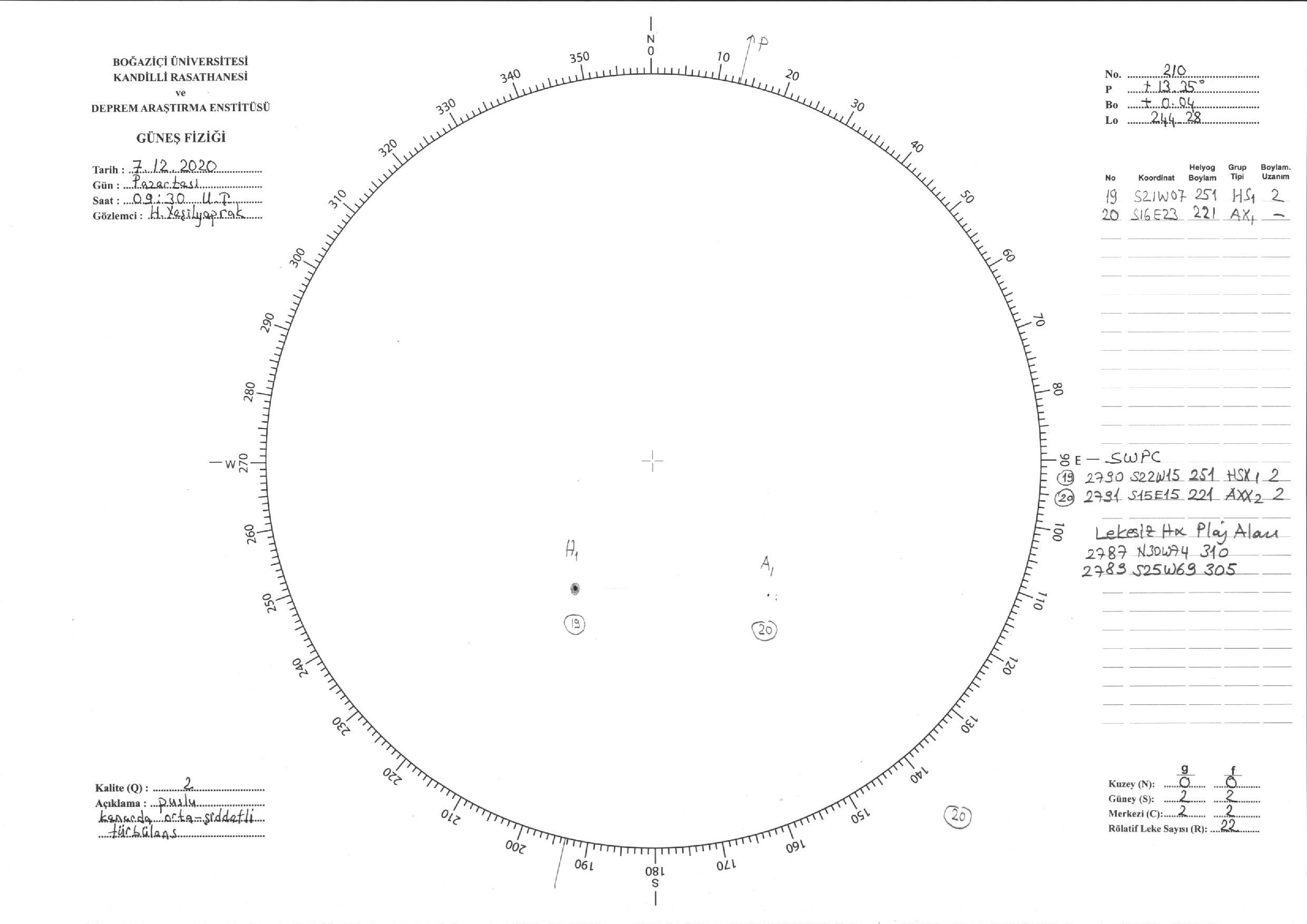 Güneş Lekesi Çizimi - 07.12.2020
