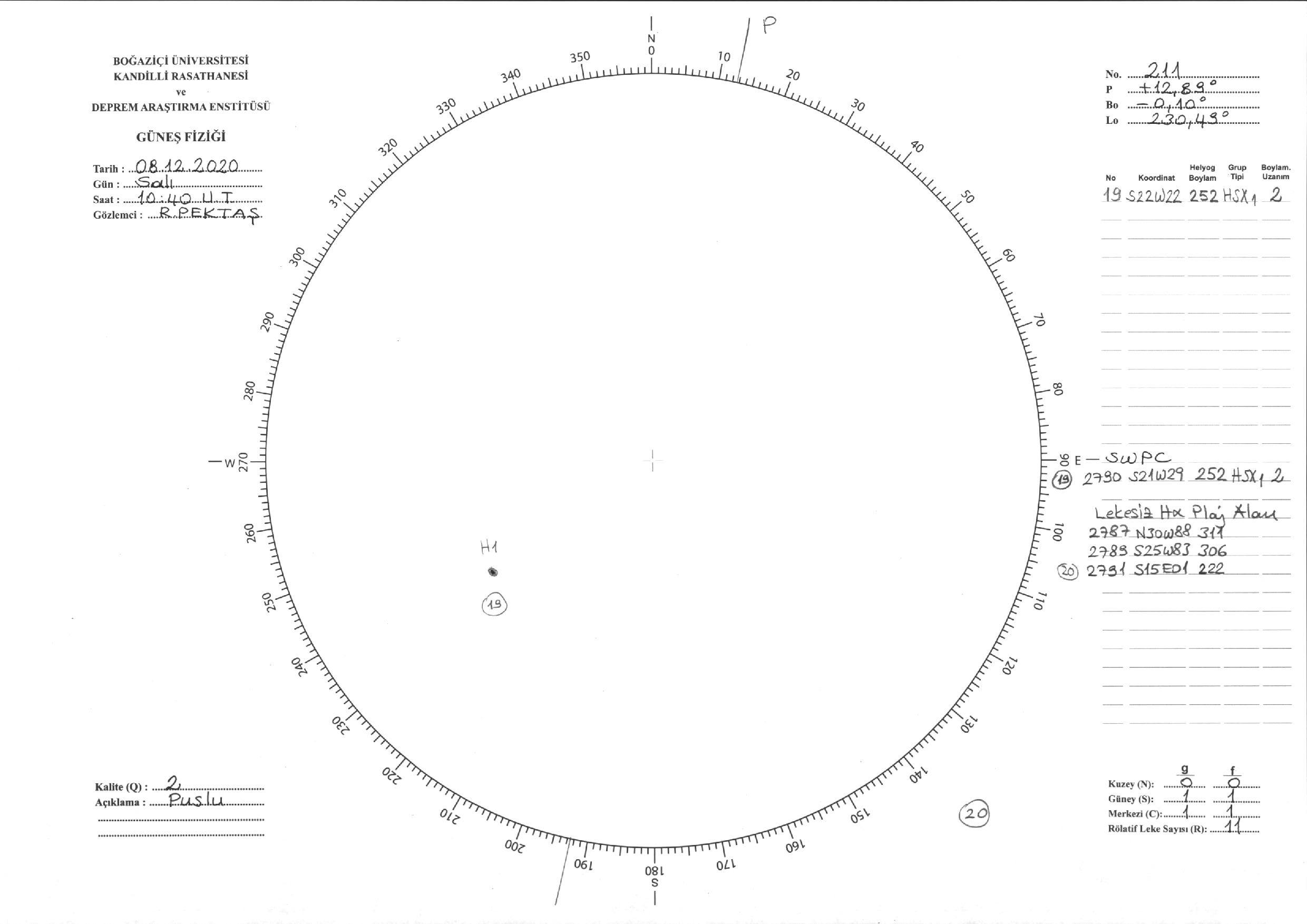 Güneş Lekesi Çizimi - 08.12.2020