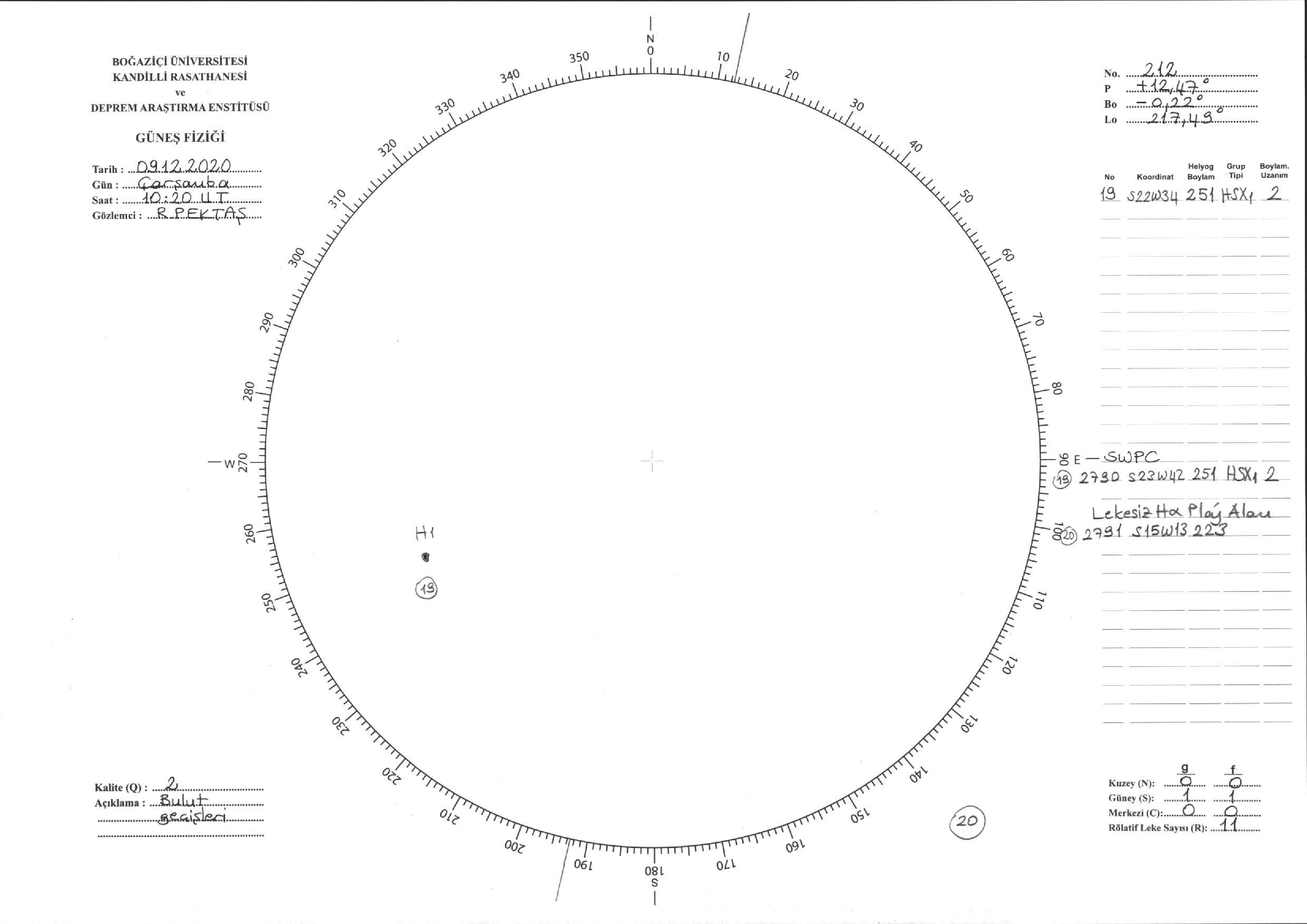 Güneş Lekesi Çizimi - 09.12.2020