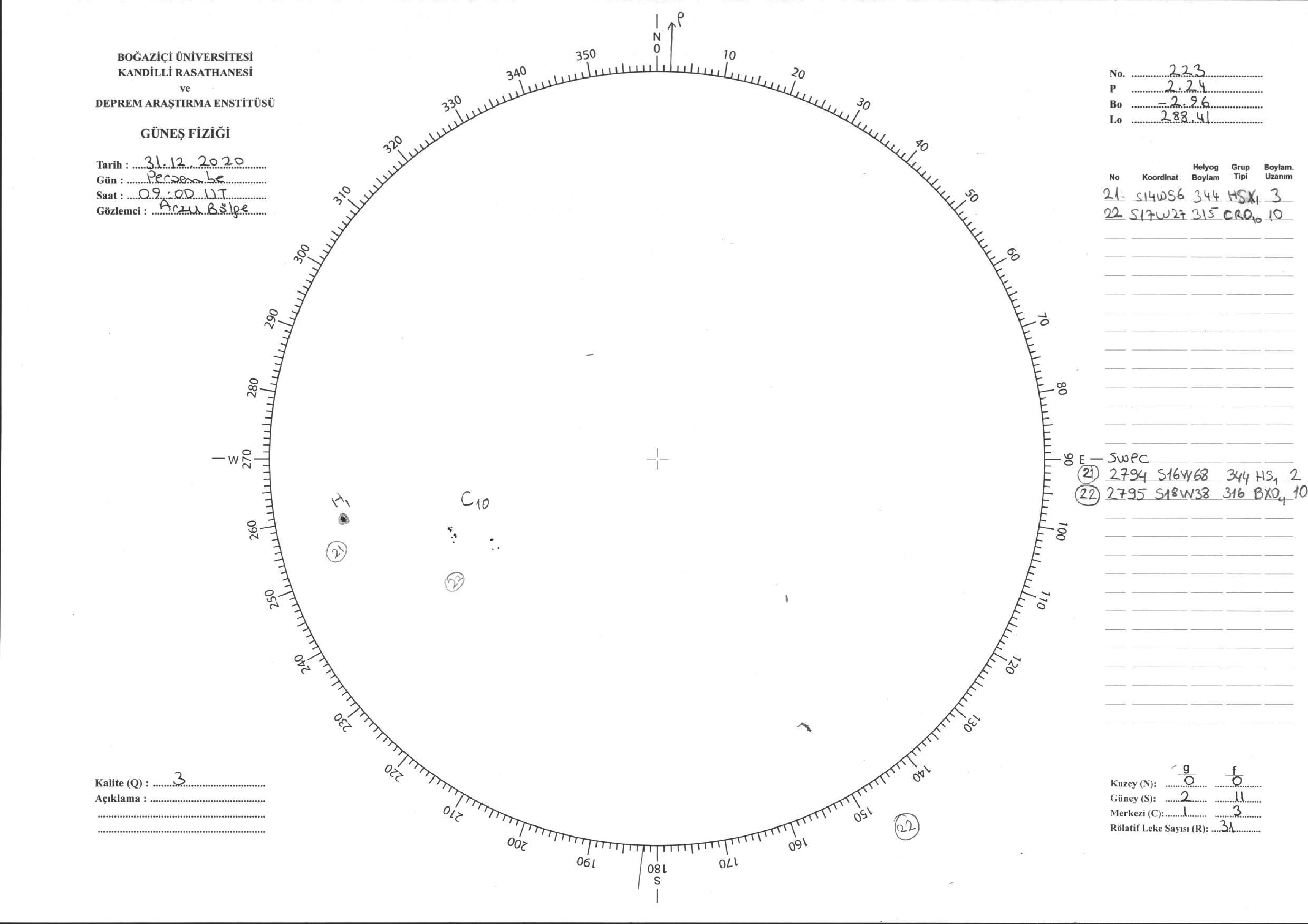 Güneş Lekesi Çizimi - 31.12.2020