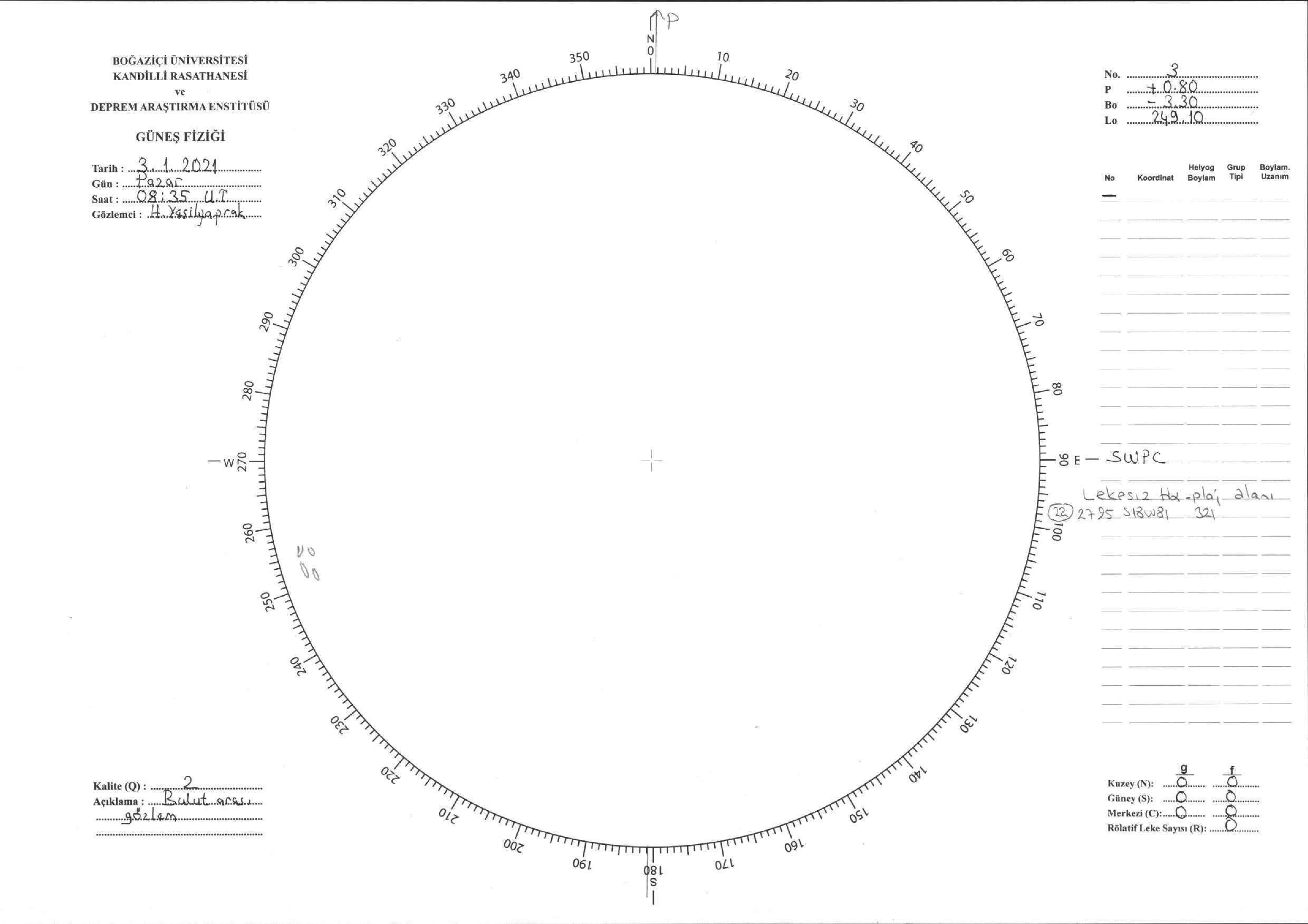 Güneş Lekesi Çizimi - 03.01.2021