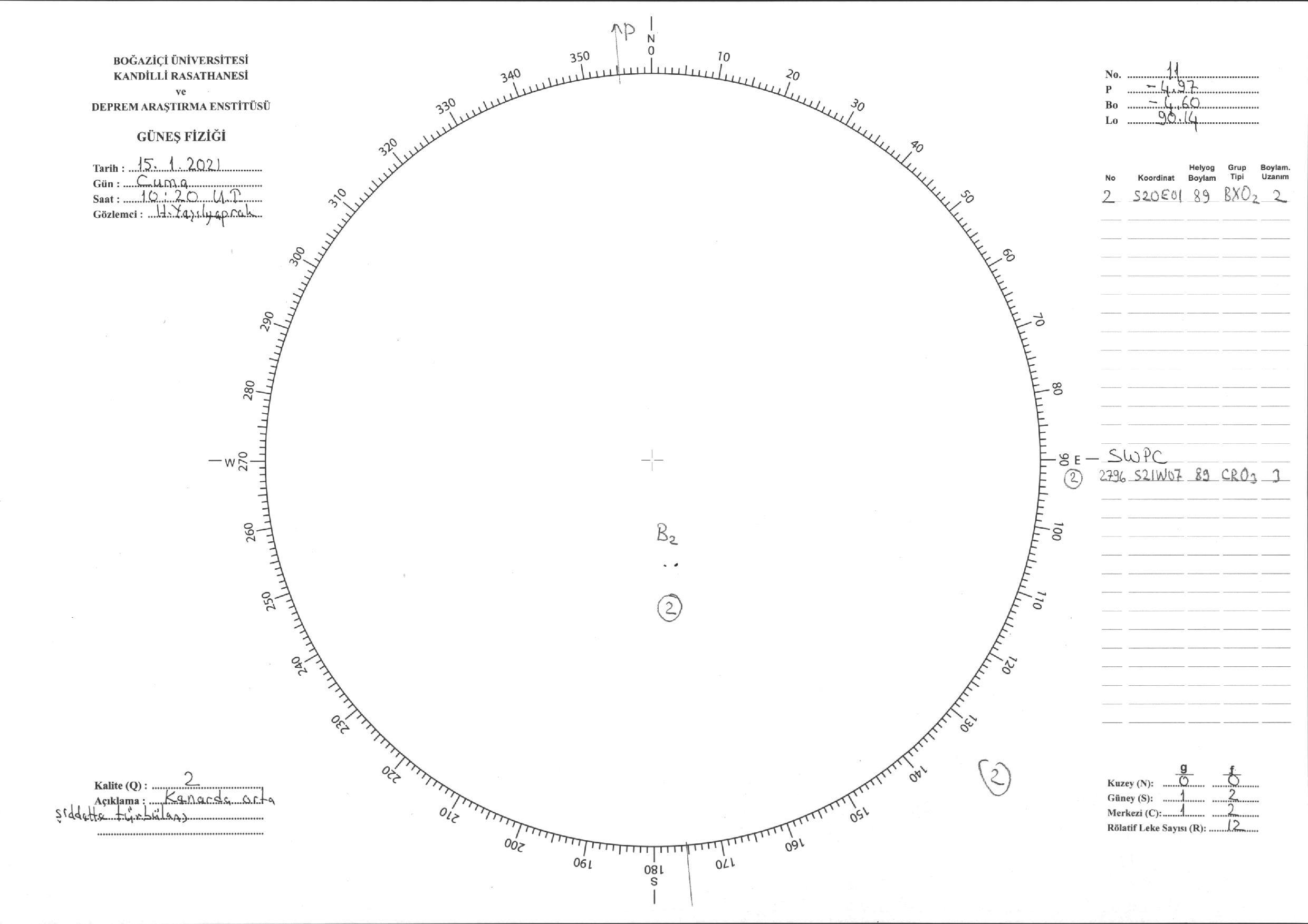 Güneş Lekesi Çizimi - 15.01.2021