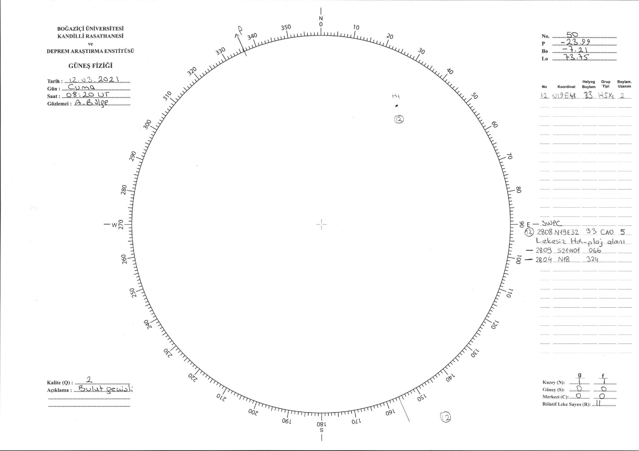 Güneş Lekesi Çizimi - 12.03.2021