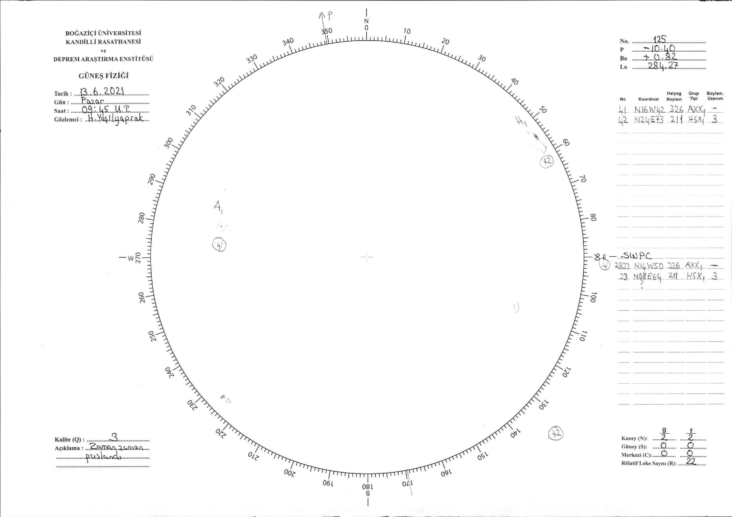 Güneş Lekesi Çizimi - 13.06.2021