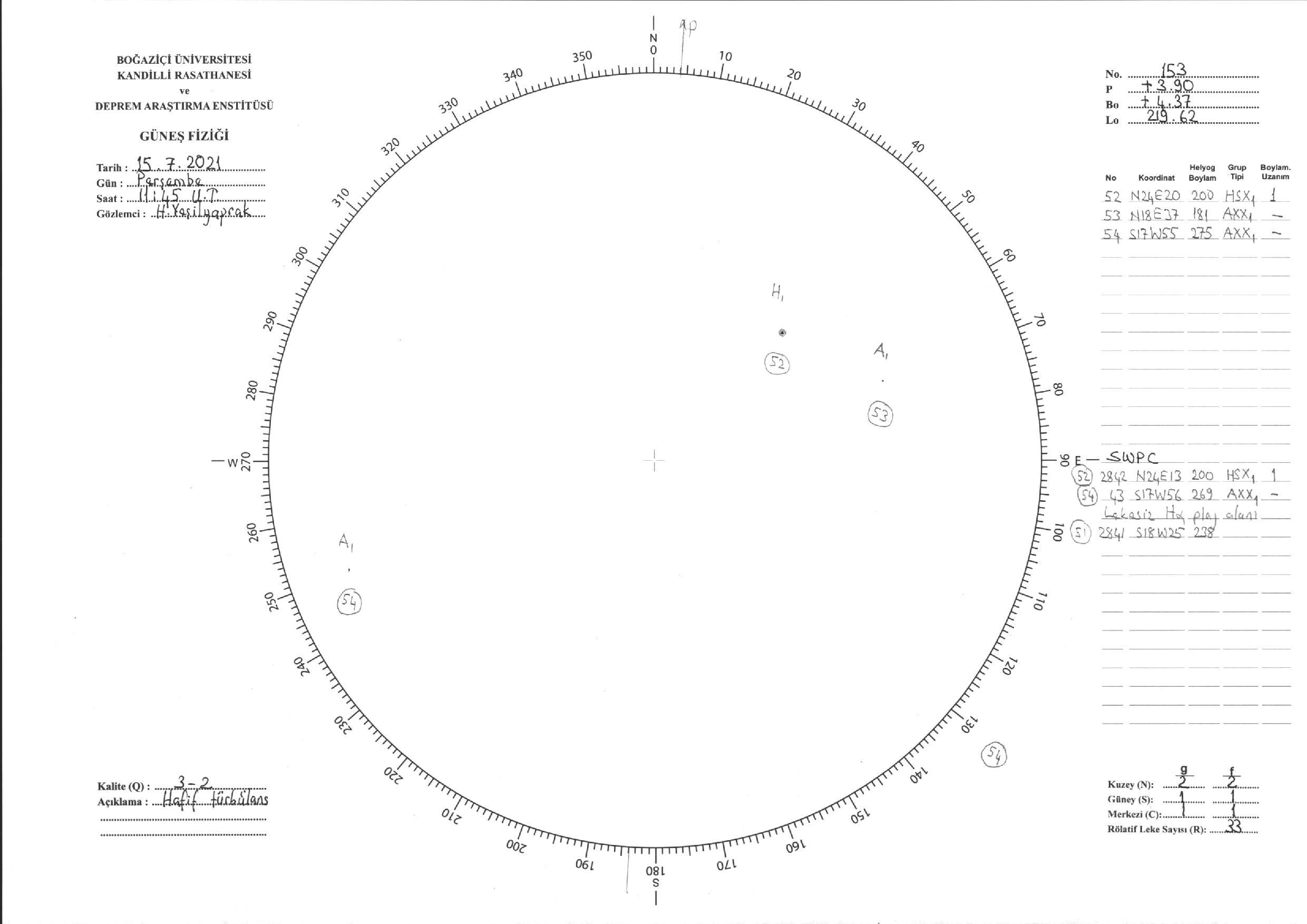 Güneş Lekesi Çizimi - 15.07.2021