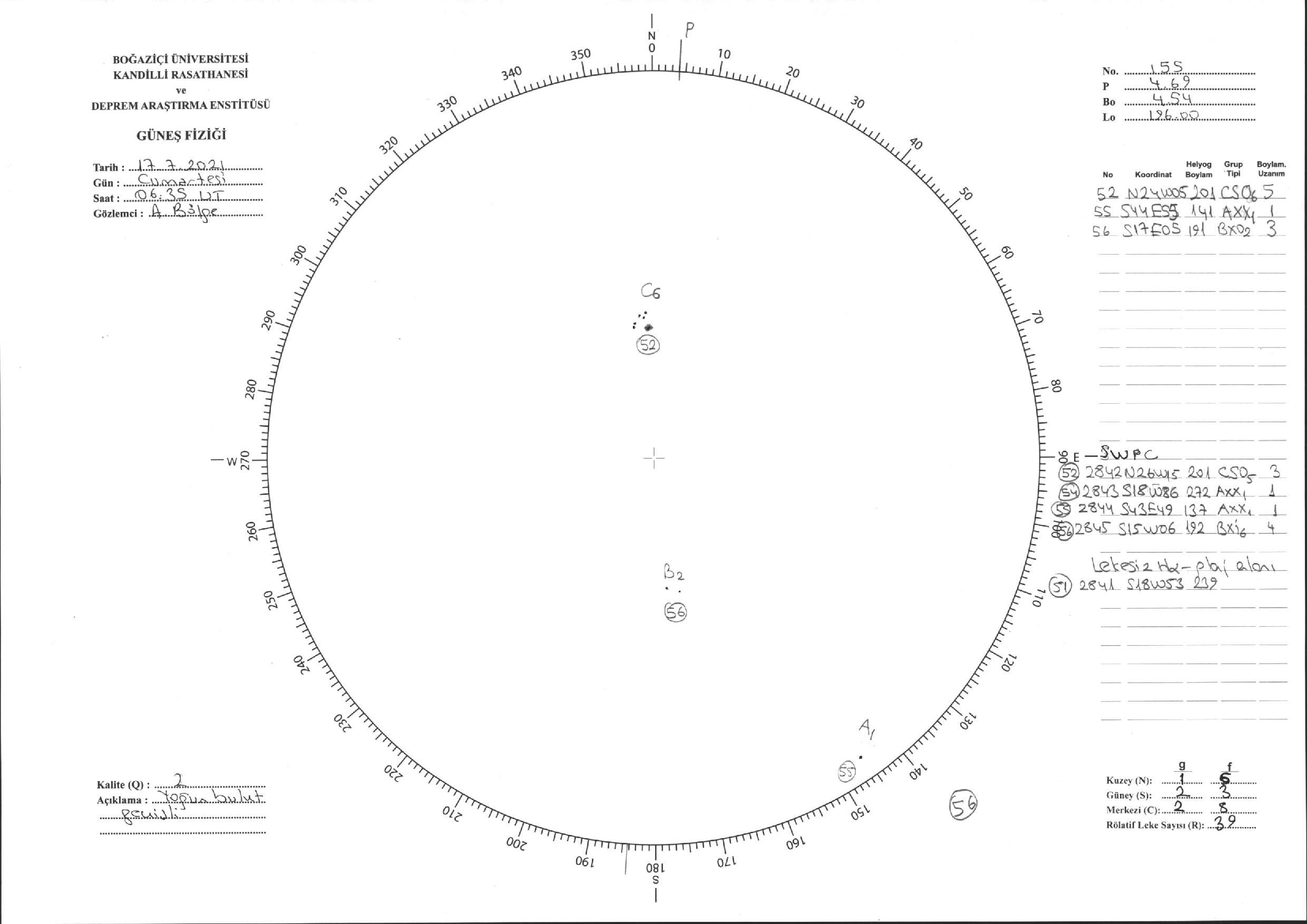 Güneş Lekesi Çizimi - 17.07.2021
