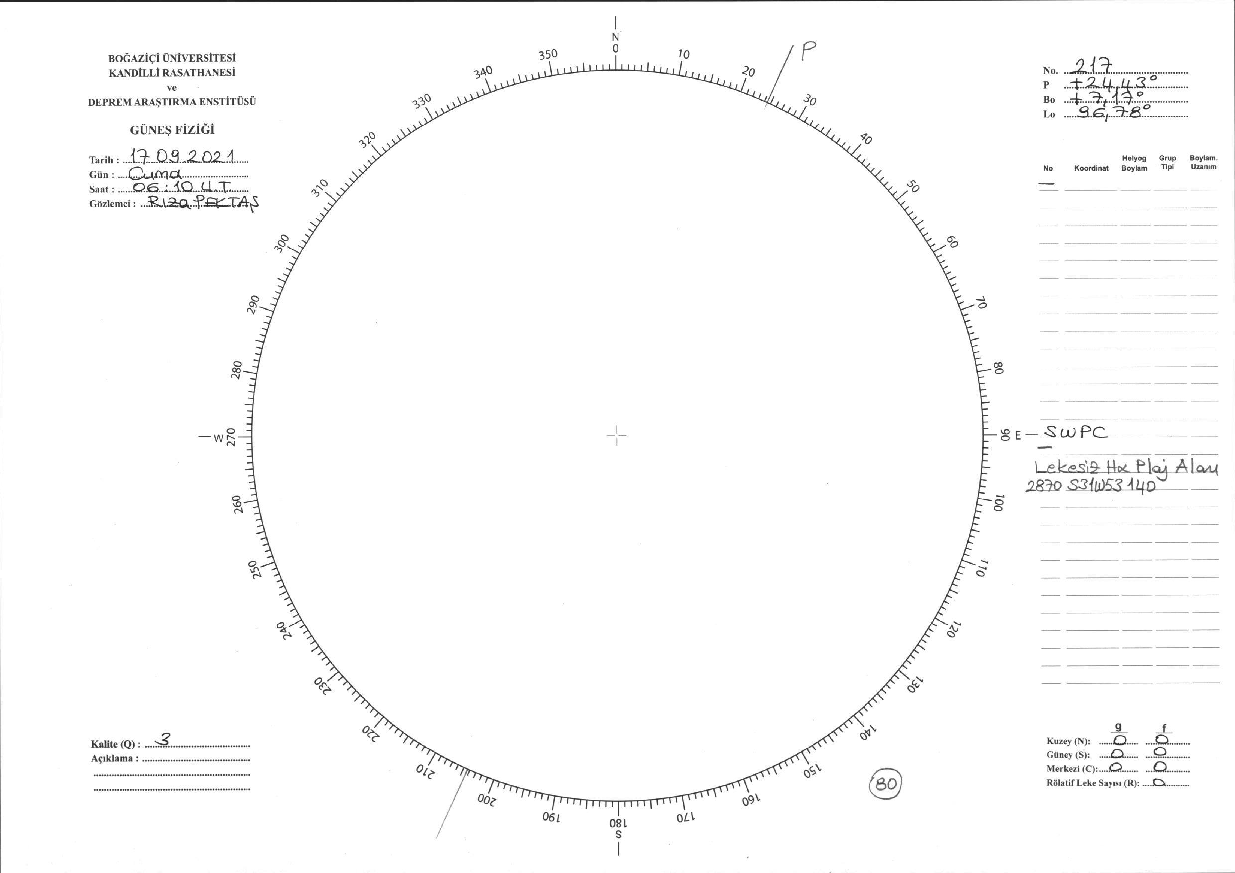 Güneş Lekesi Çizimi - 17.09.2021