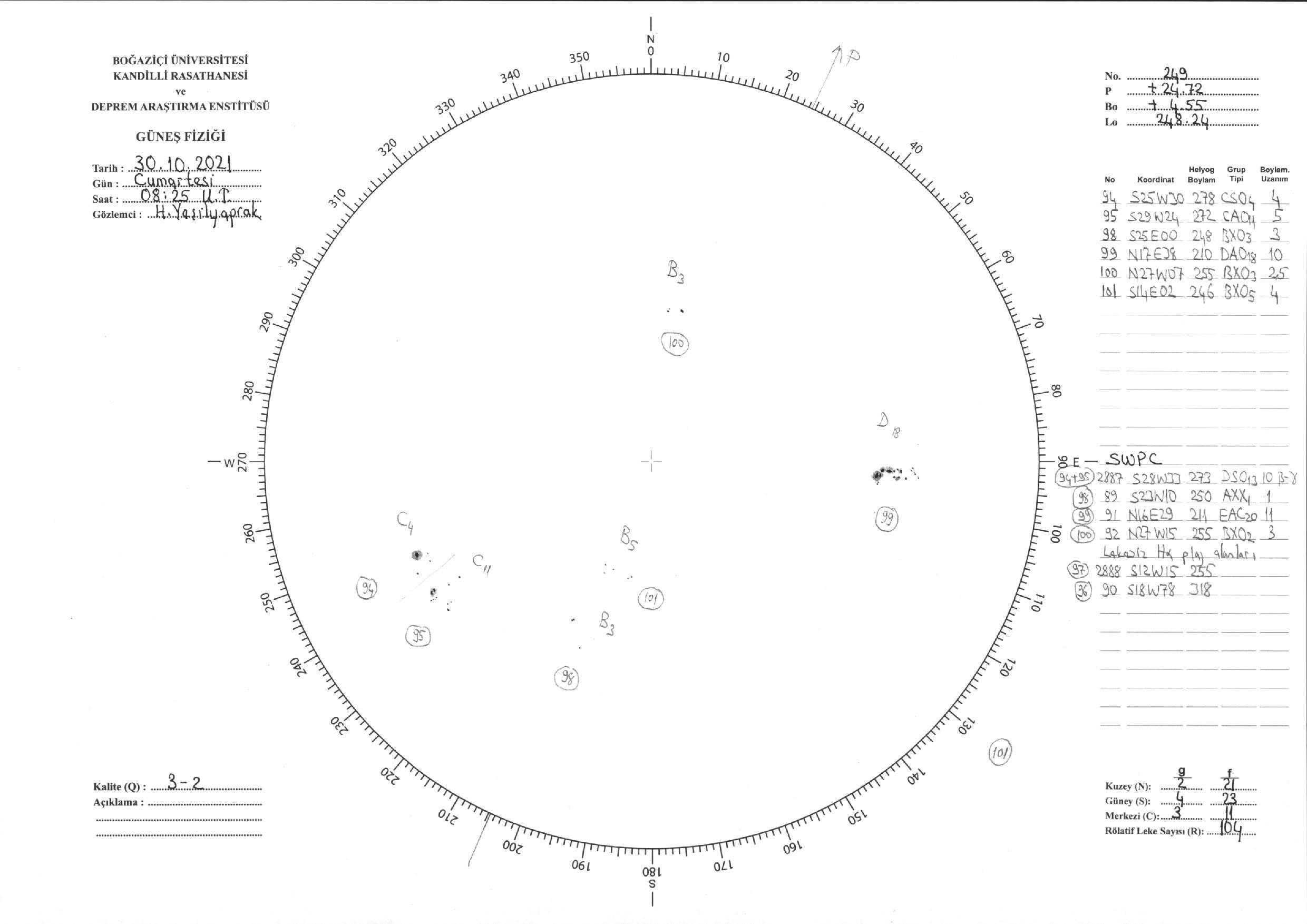 Güneş Lekesi Çizimi - 30.10.2021