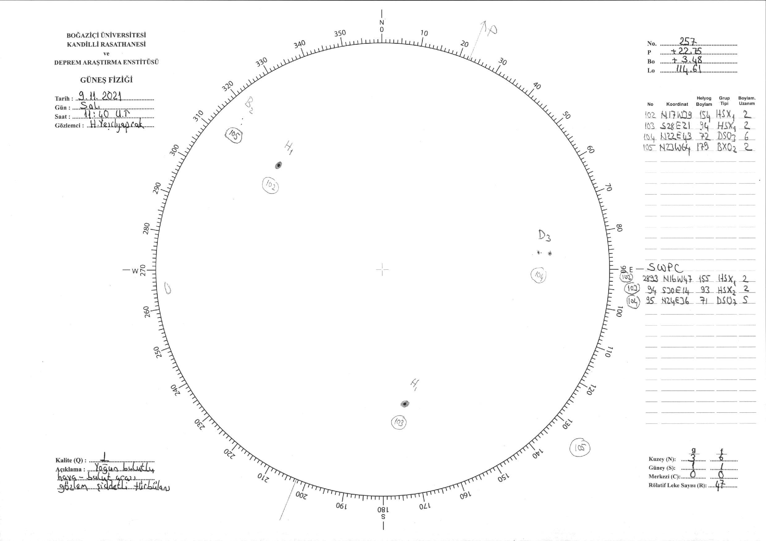 Güneş Lekesi Çizimi - 09.11.2021