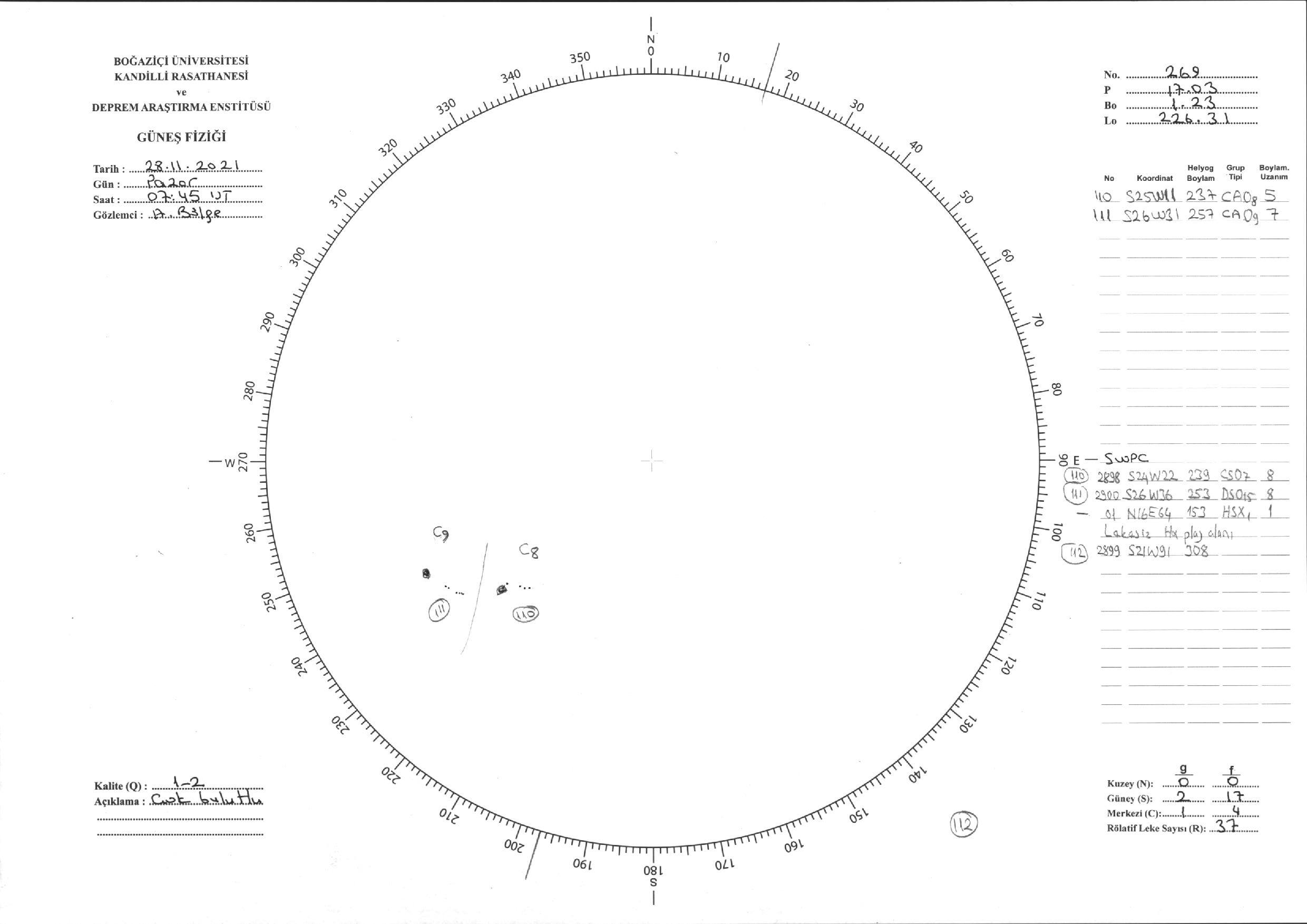 Güneş Lekesi Çizimi - 28.11.2021