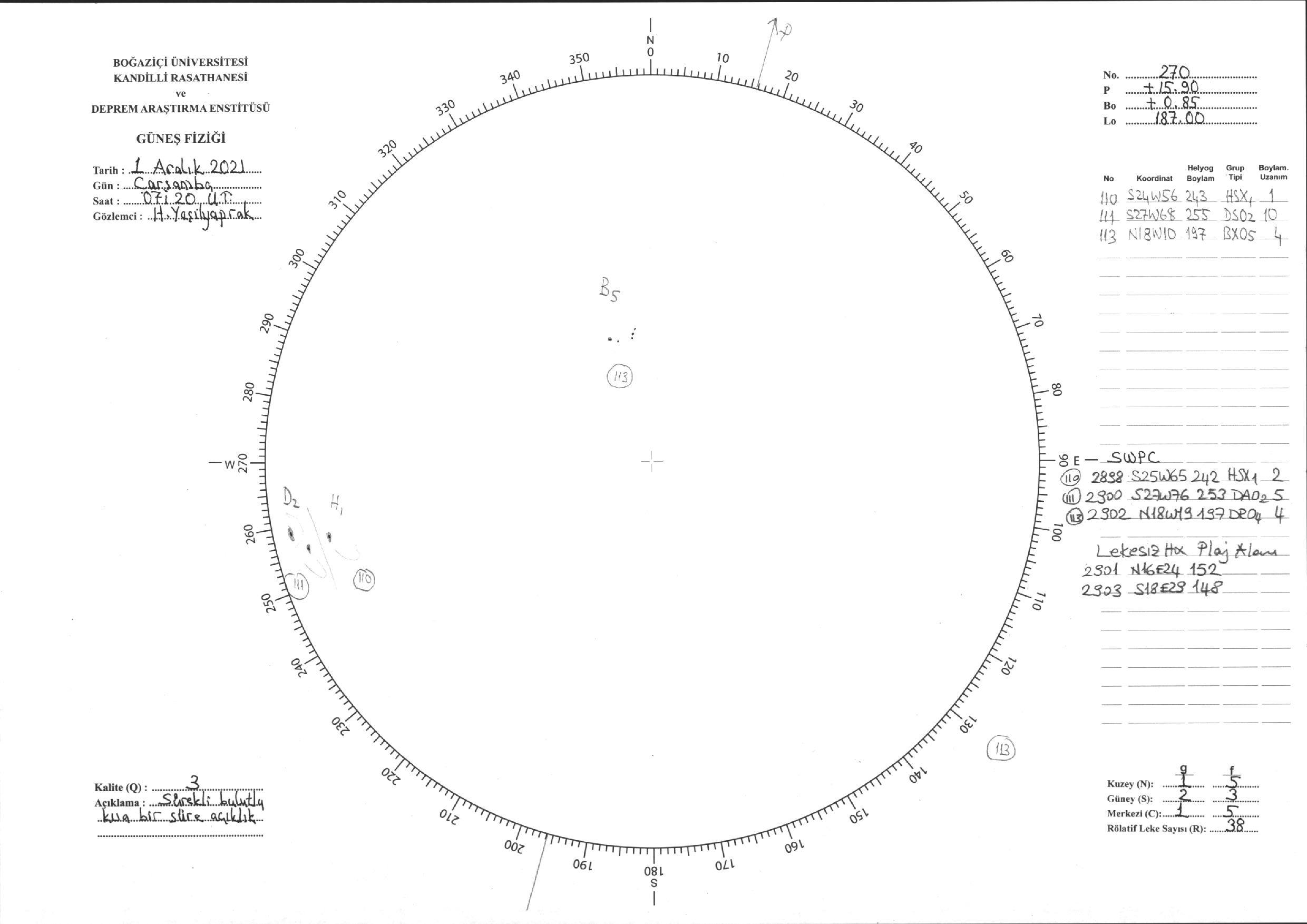Güneş Lekesi Çizimi - 01.12.2021