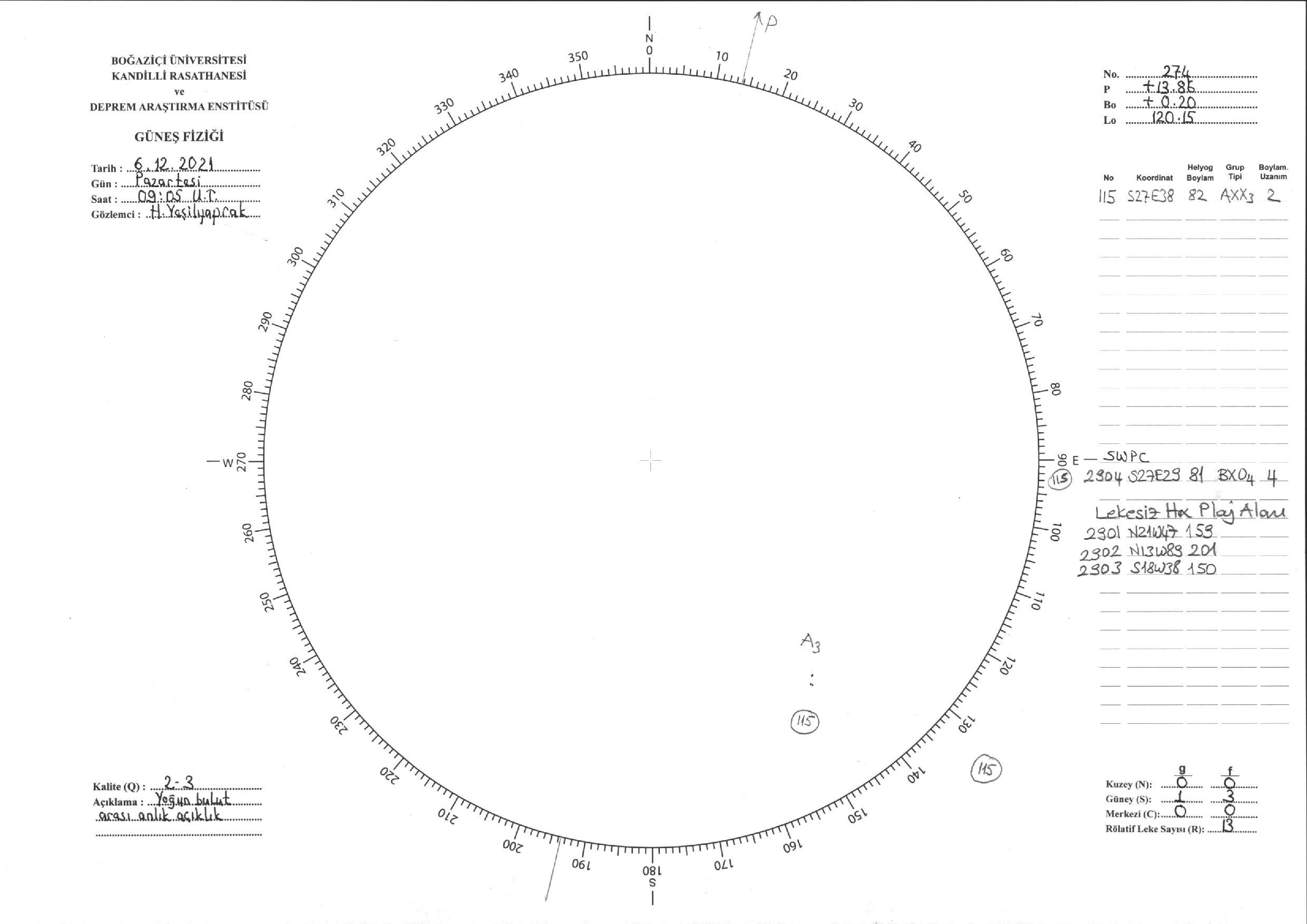 Güneş Lekesi Çizimi - 06.12.2021