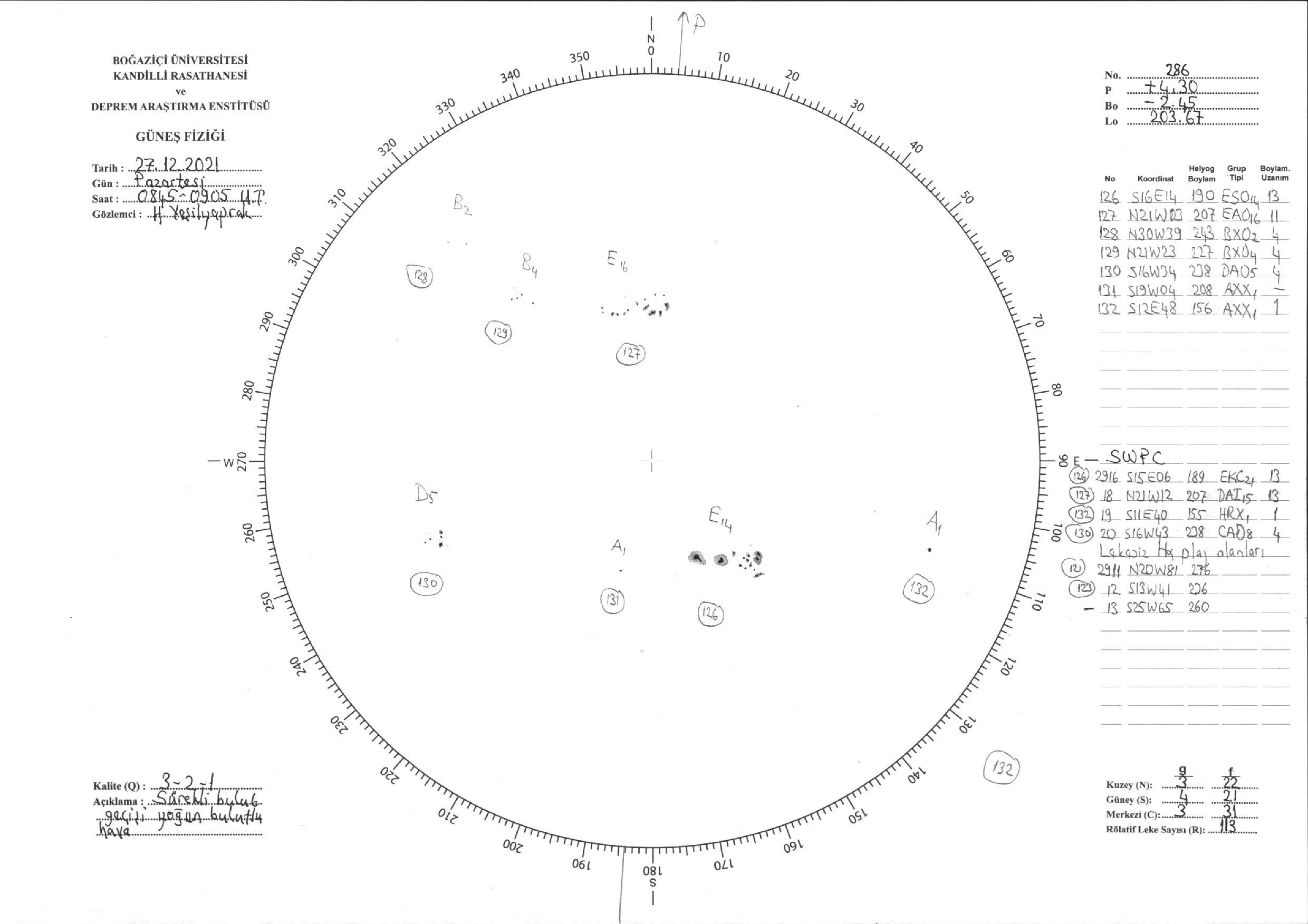 Güneş Lekesi Çizimi - 27.12.2021