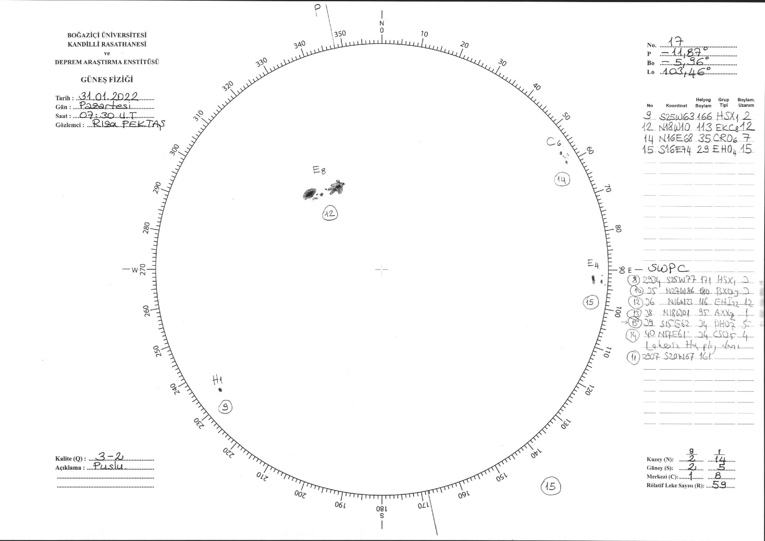 Güneş Lekesi Çizimi - 31.01.2022