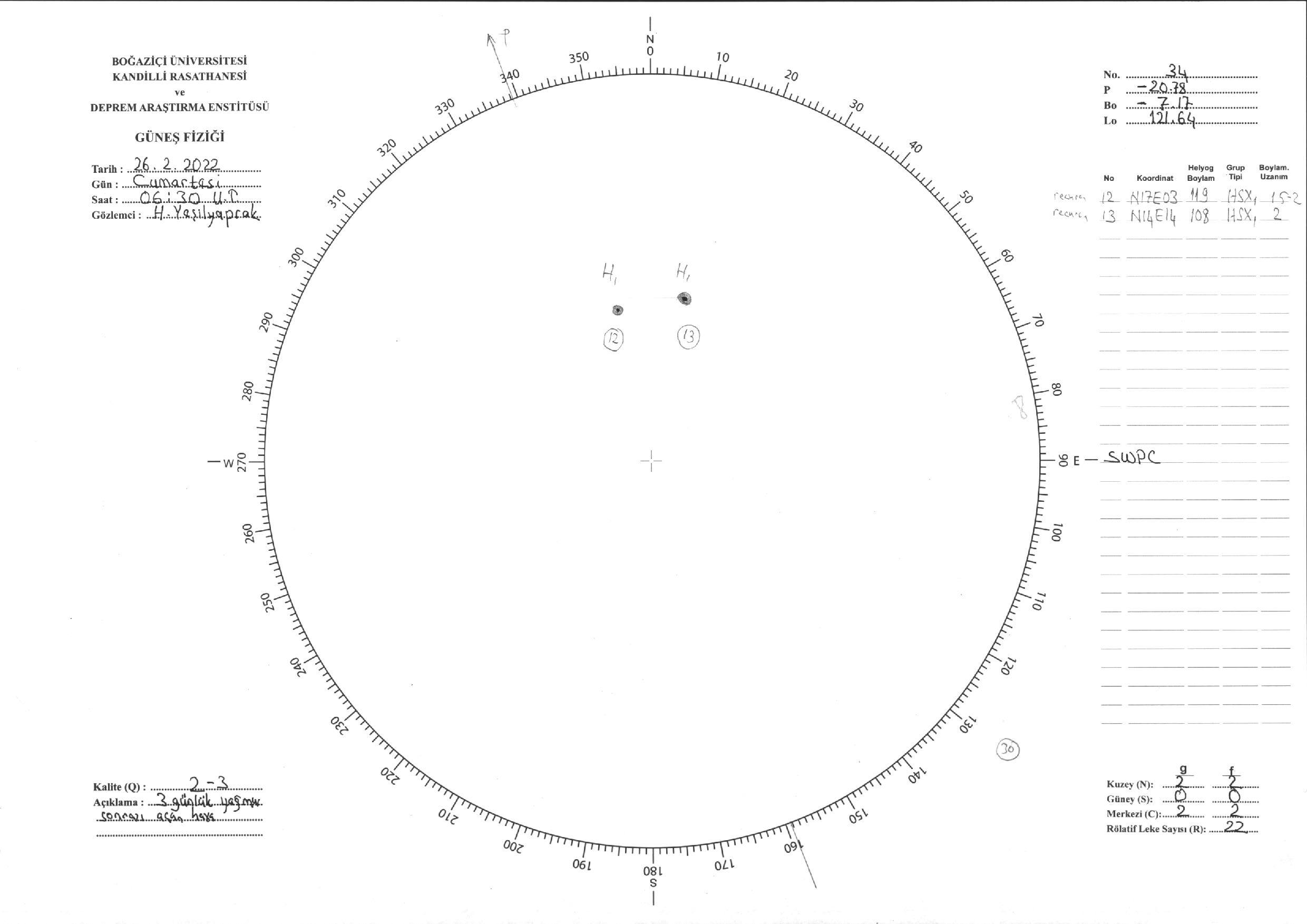 Güneş Lekesi Çizimi - 26.02.2022