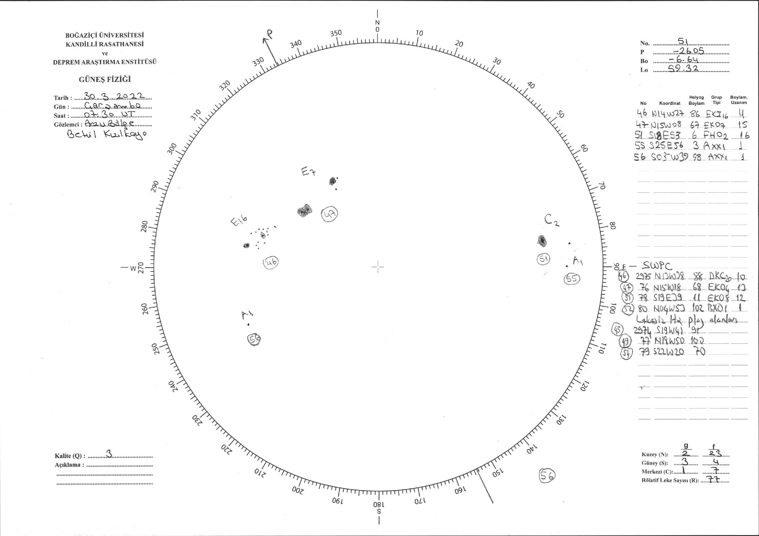 Güneş Lekesi Çizimi - 30.03.2022