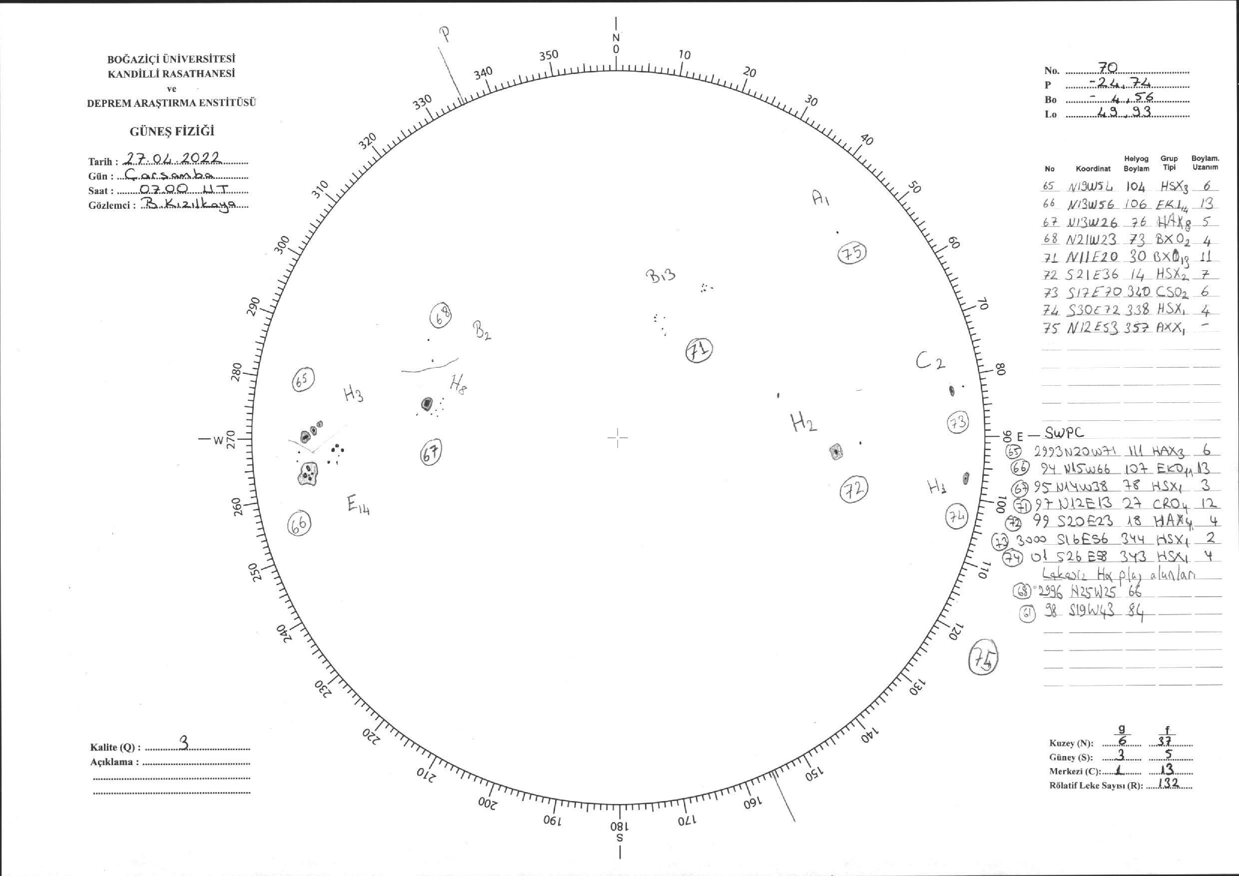 Güneş Lekesi Çizimi - 27.04.2022