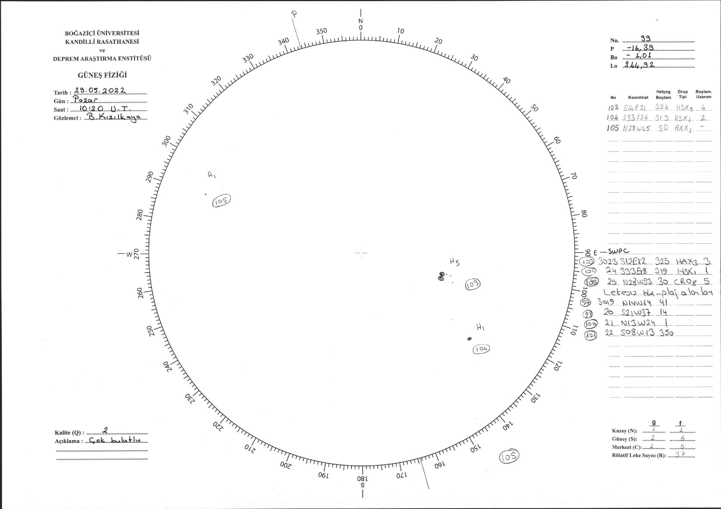 Güneş Lekesi Çizimi - 29.05.2022