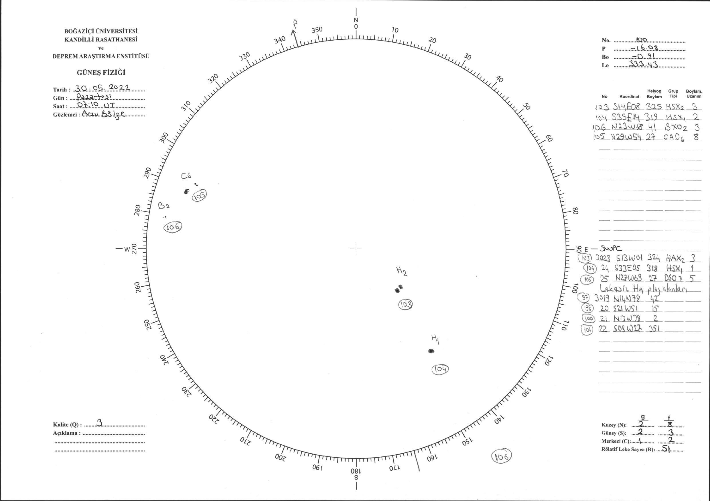 Güneş Lekesi Çizimi - 30.05.2022