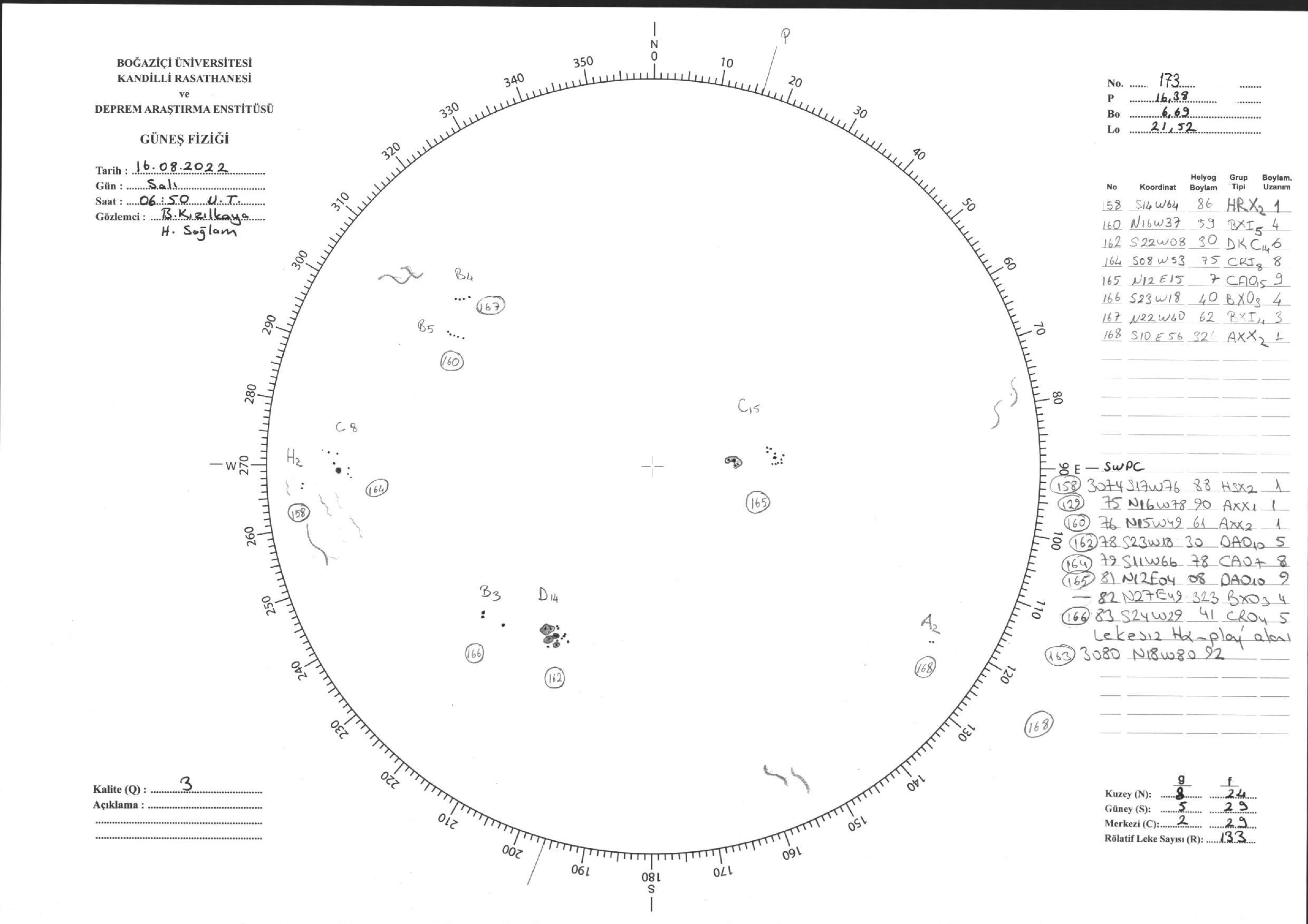 Güneş Lekesi Çizimi - 16.08.2022