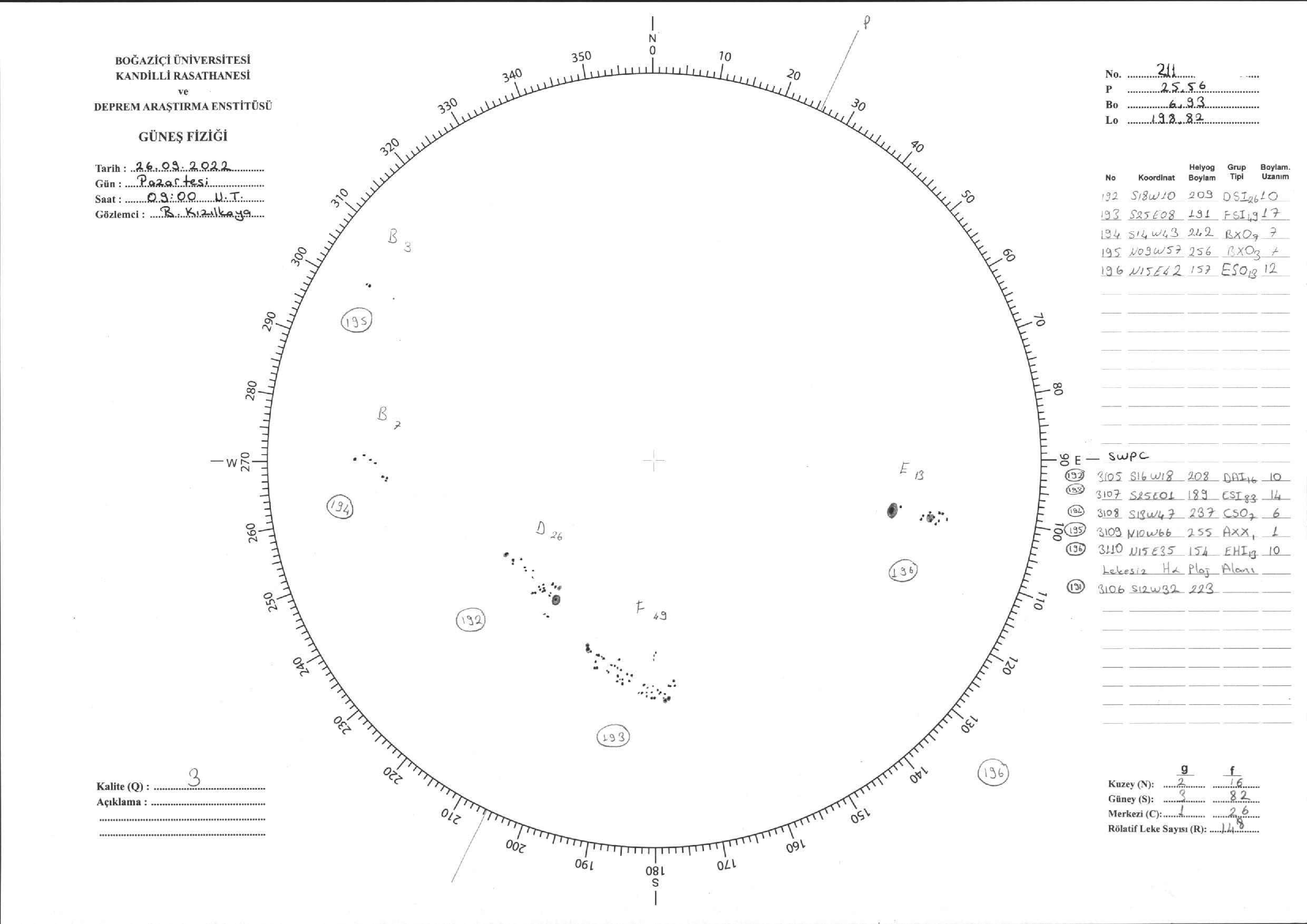Güneş Lekesi Çizimi - 26.09.2022