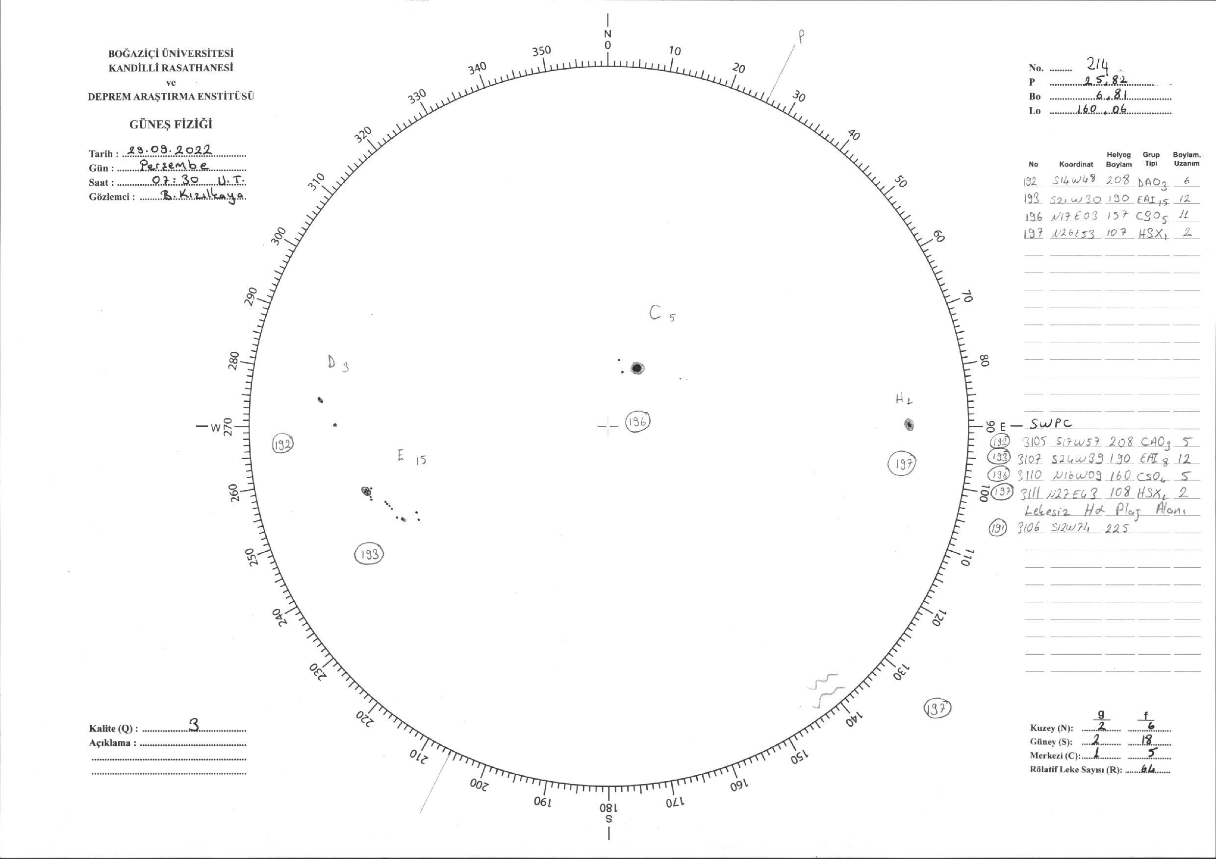 Güneş Lekesi Çizimi - 29.09.2022