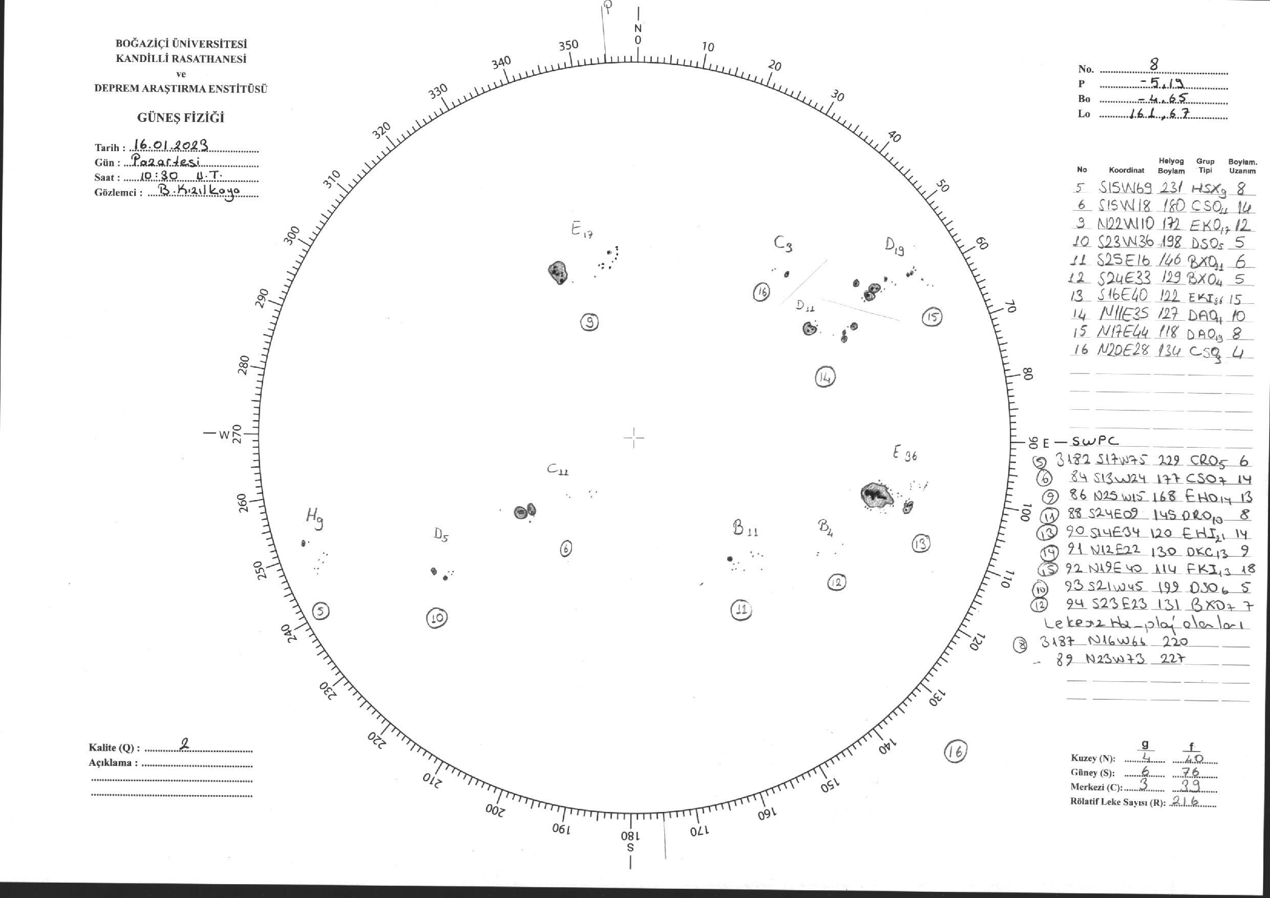 Güneş Lekesi Çizimi - 16.01.2023