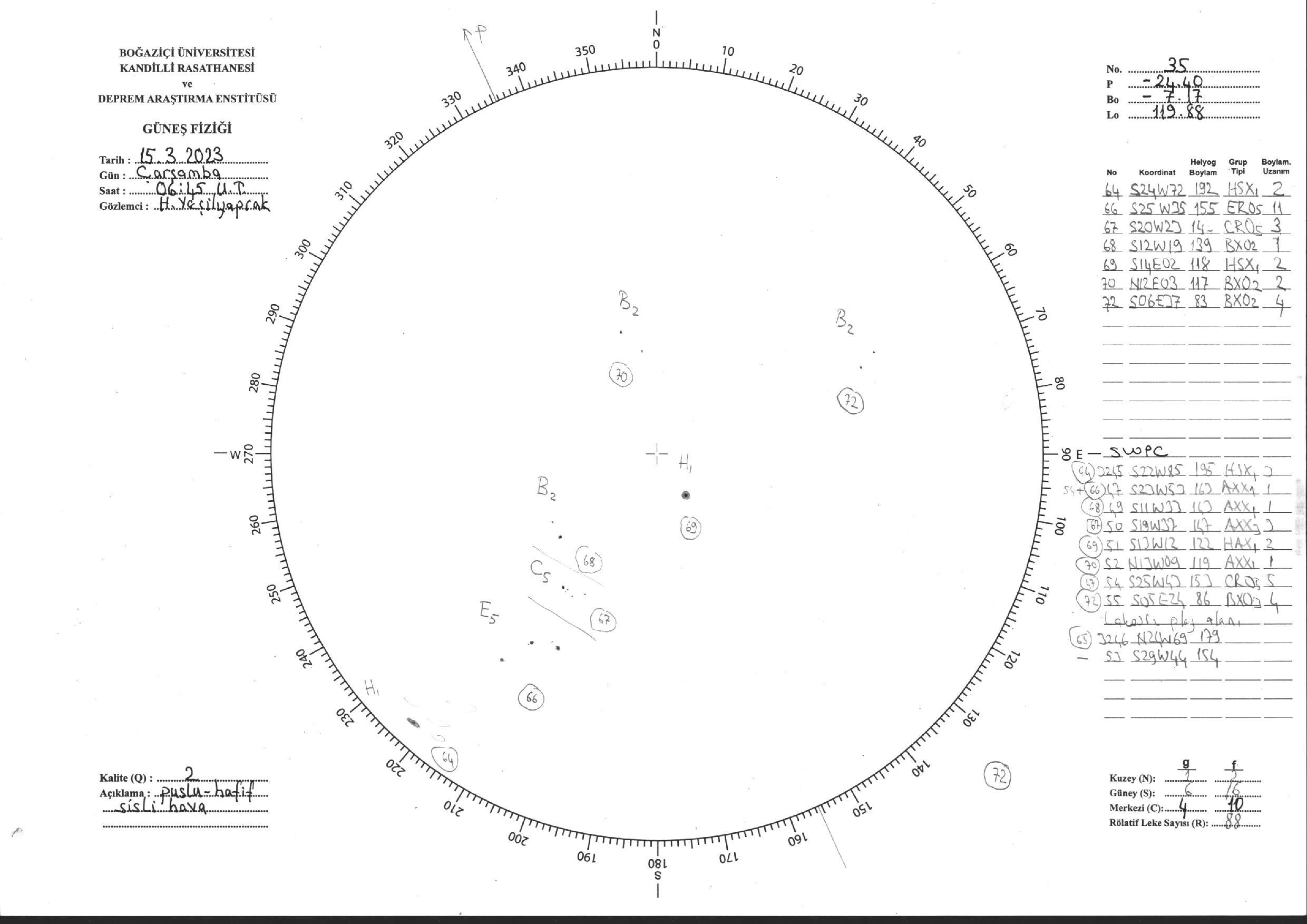 Güneş Lekesi Çizimi - 15.03.2023