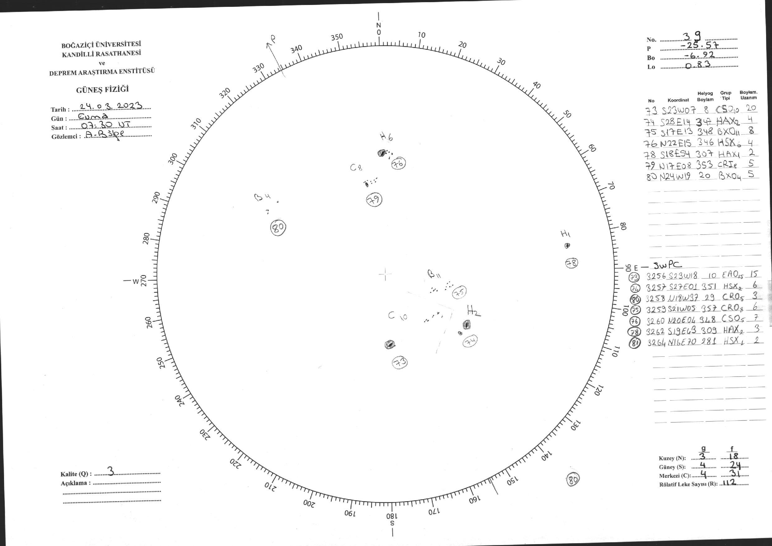 Güneş Lekesi Çizimi - 24.03.2023