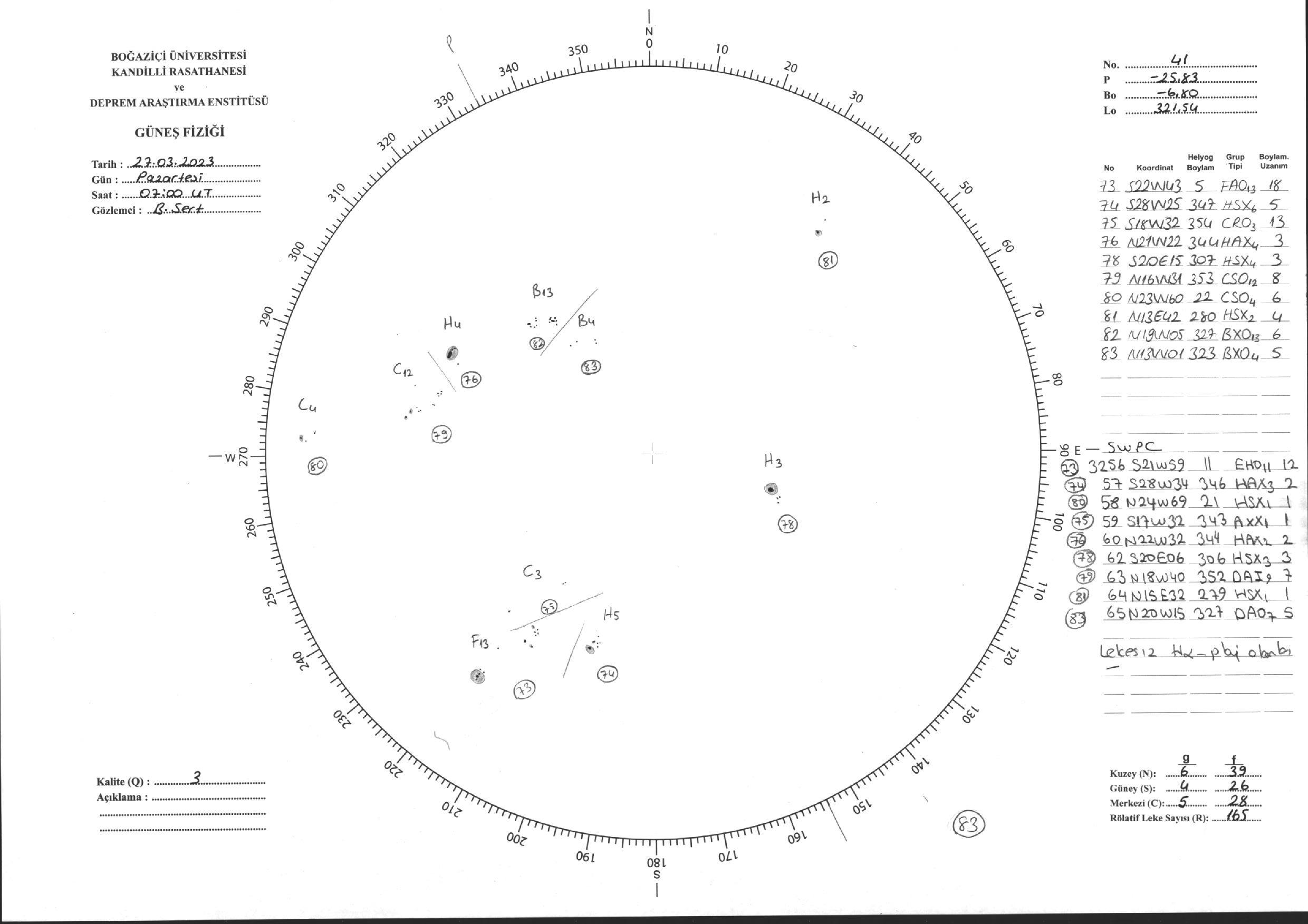 Güneş Lekesi Çizimi - 27.03.2023