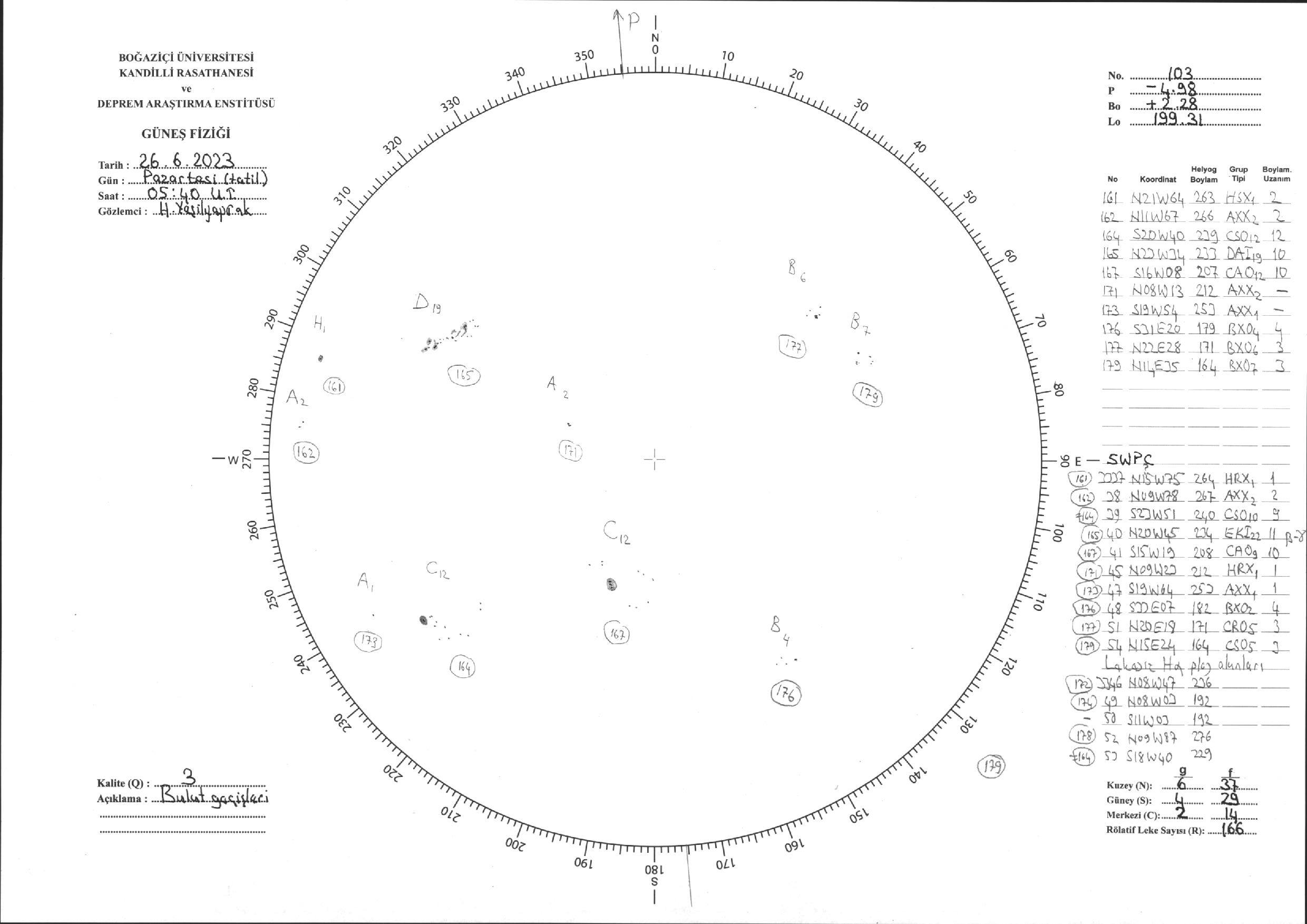 Güneş Lekesi Çizimi - 26.06.2023