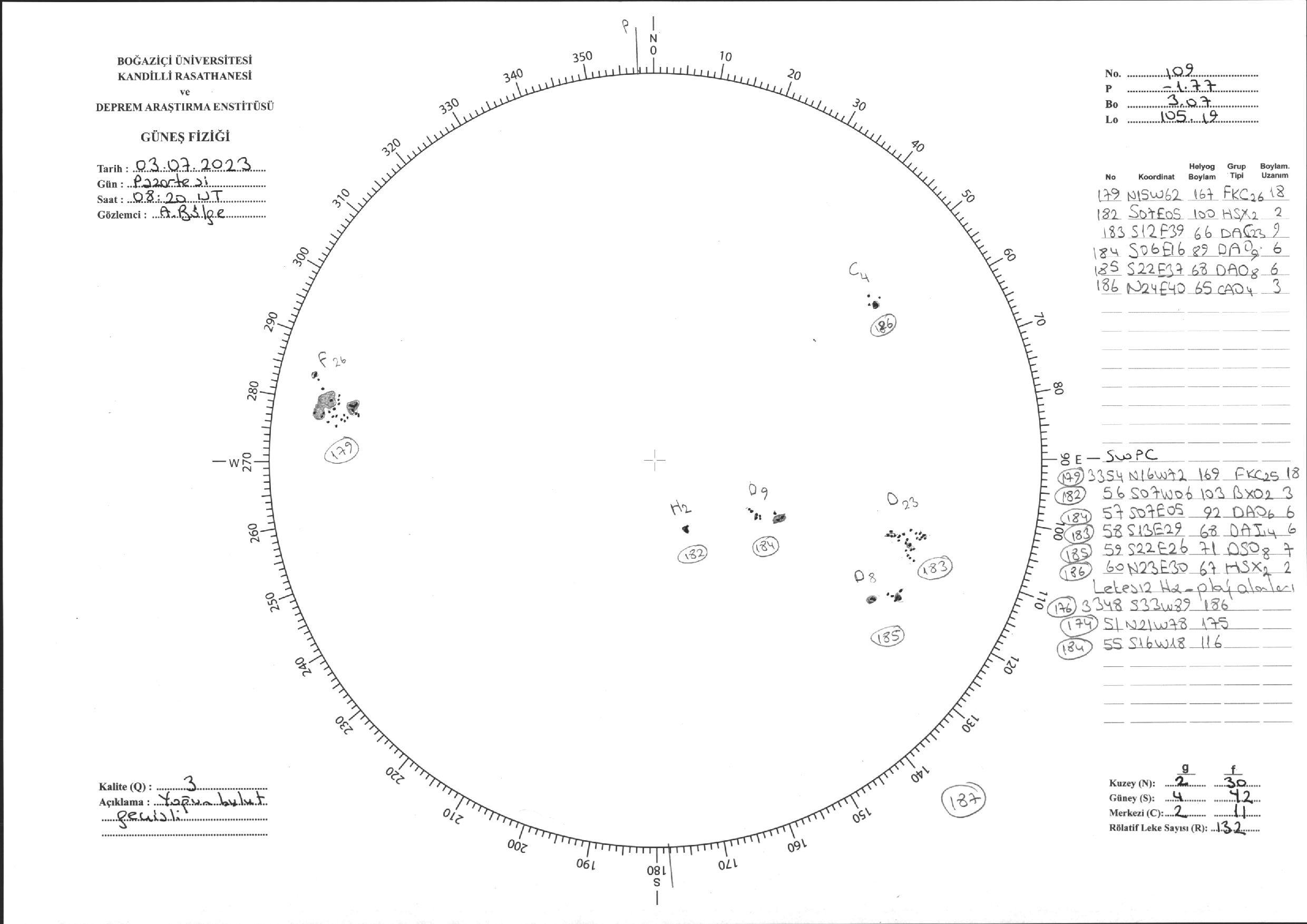 Güneş Lekesi Çizimi - 03.07.2023
