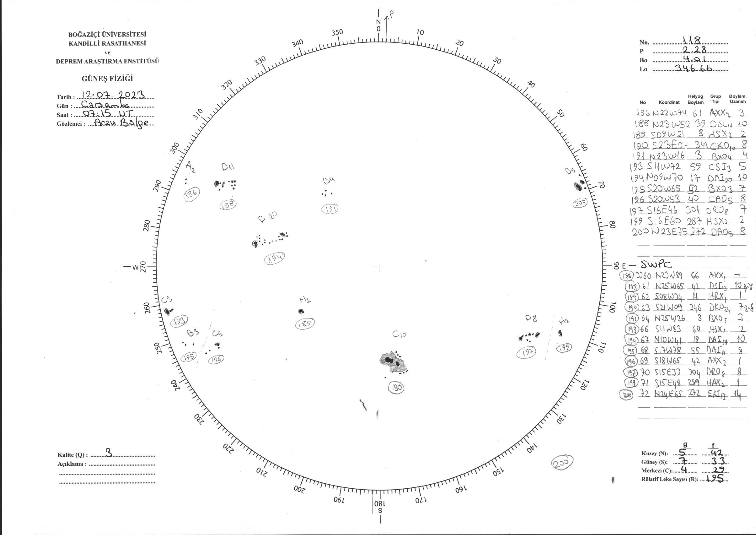 Güneş Lekesi Çizimi - 12.07.2023