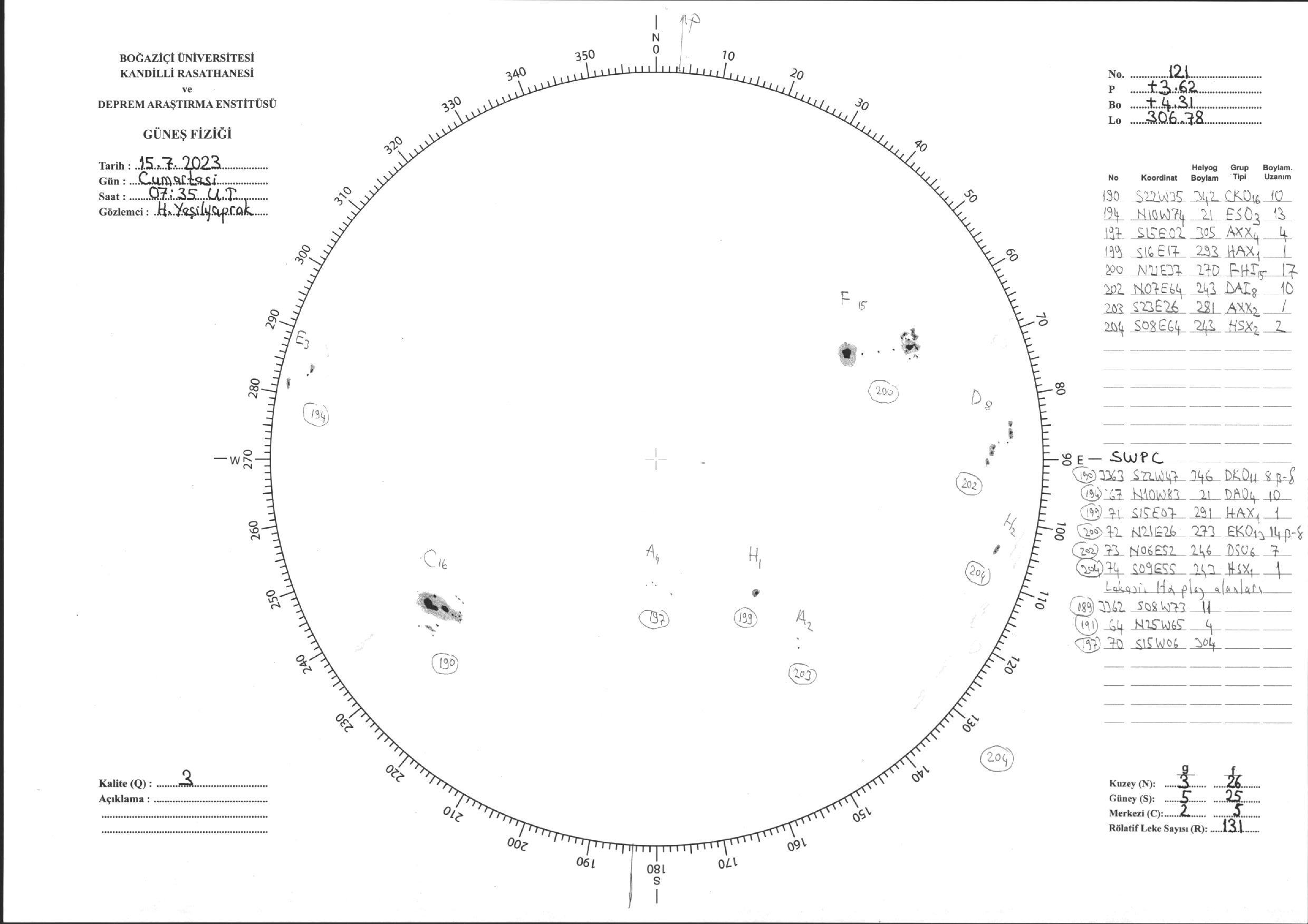 Güneş Lekesi Çizimi - 15.07.2023