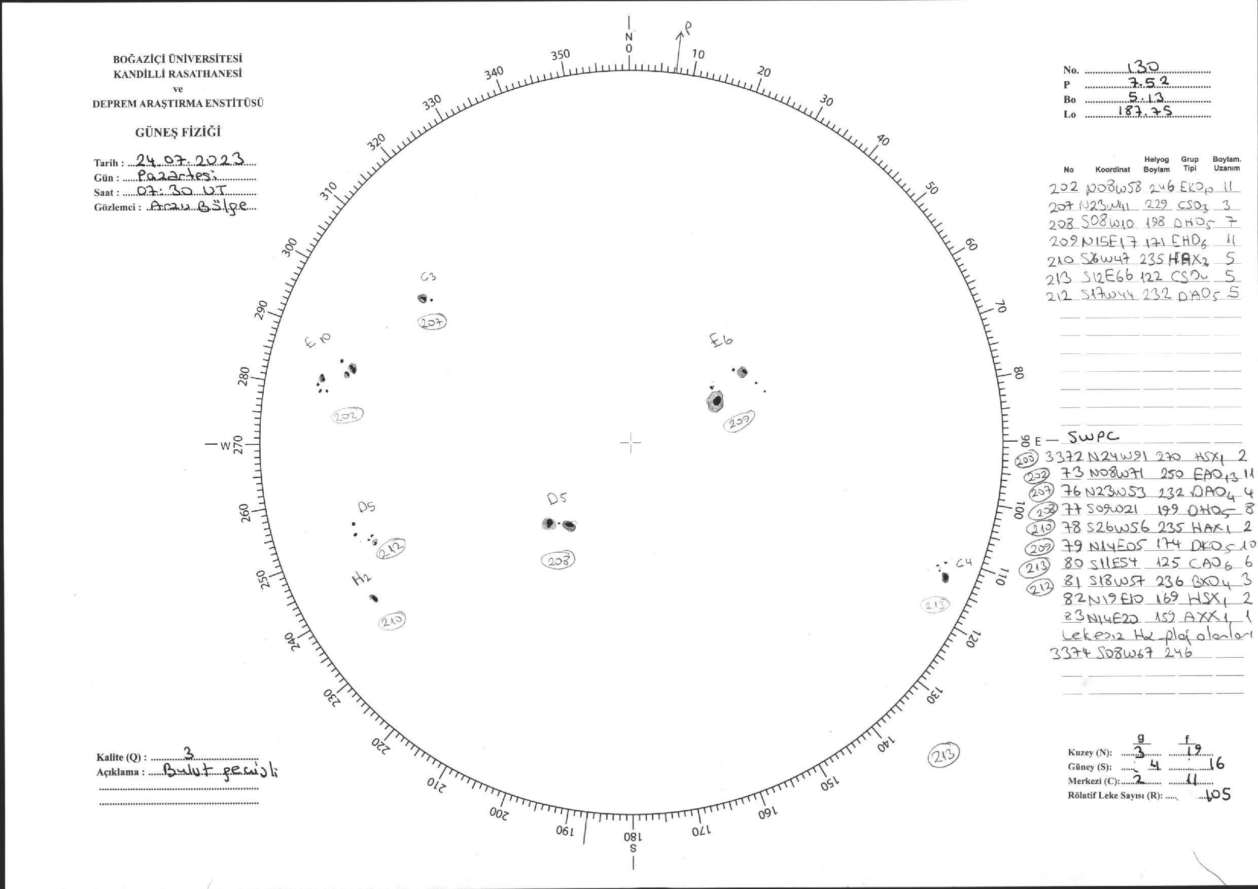 Güneş Lekesi Çizimi - 24.07.2023