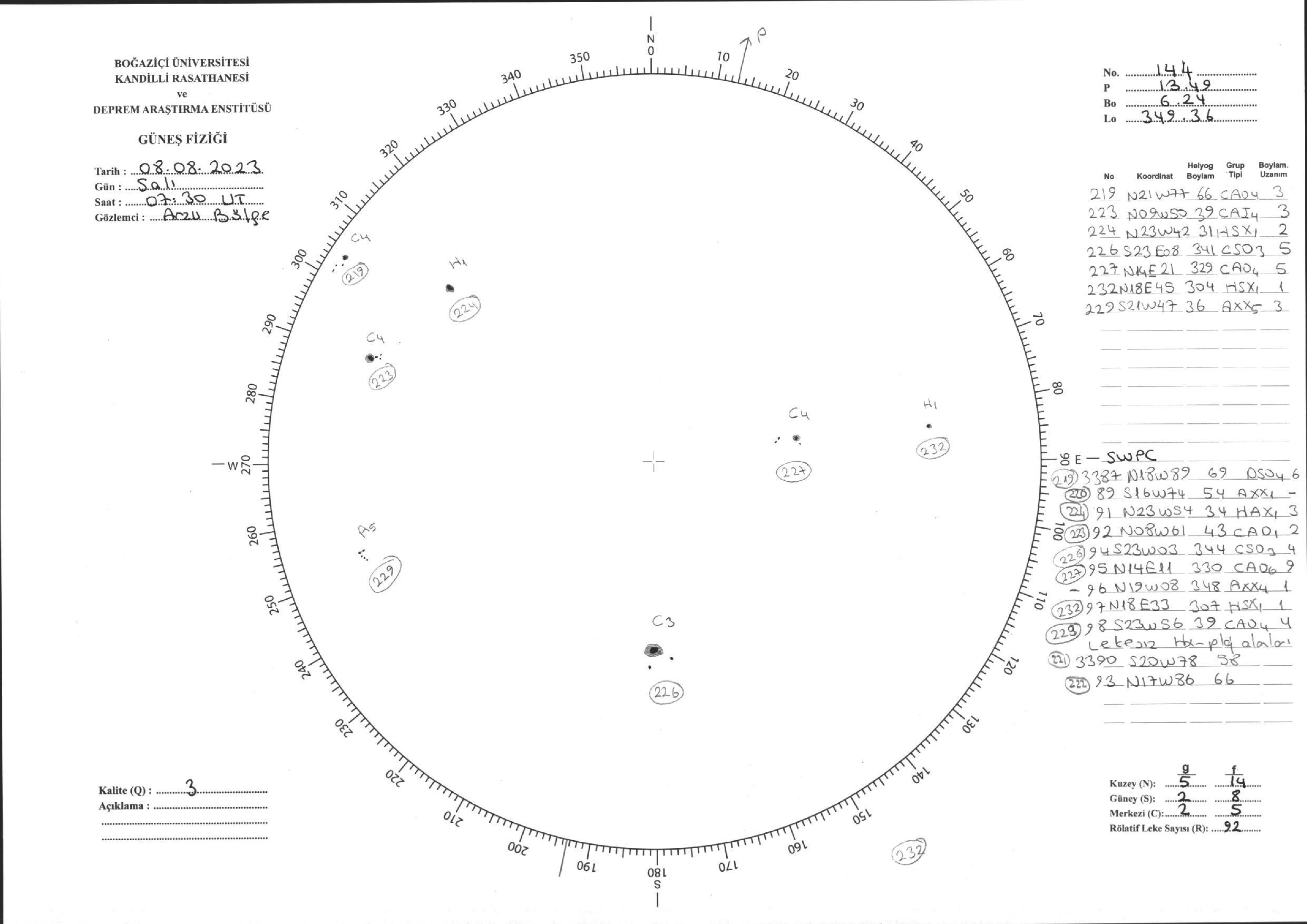 Güneş Lekesi Çizimi - 08.08.2023