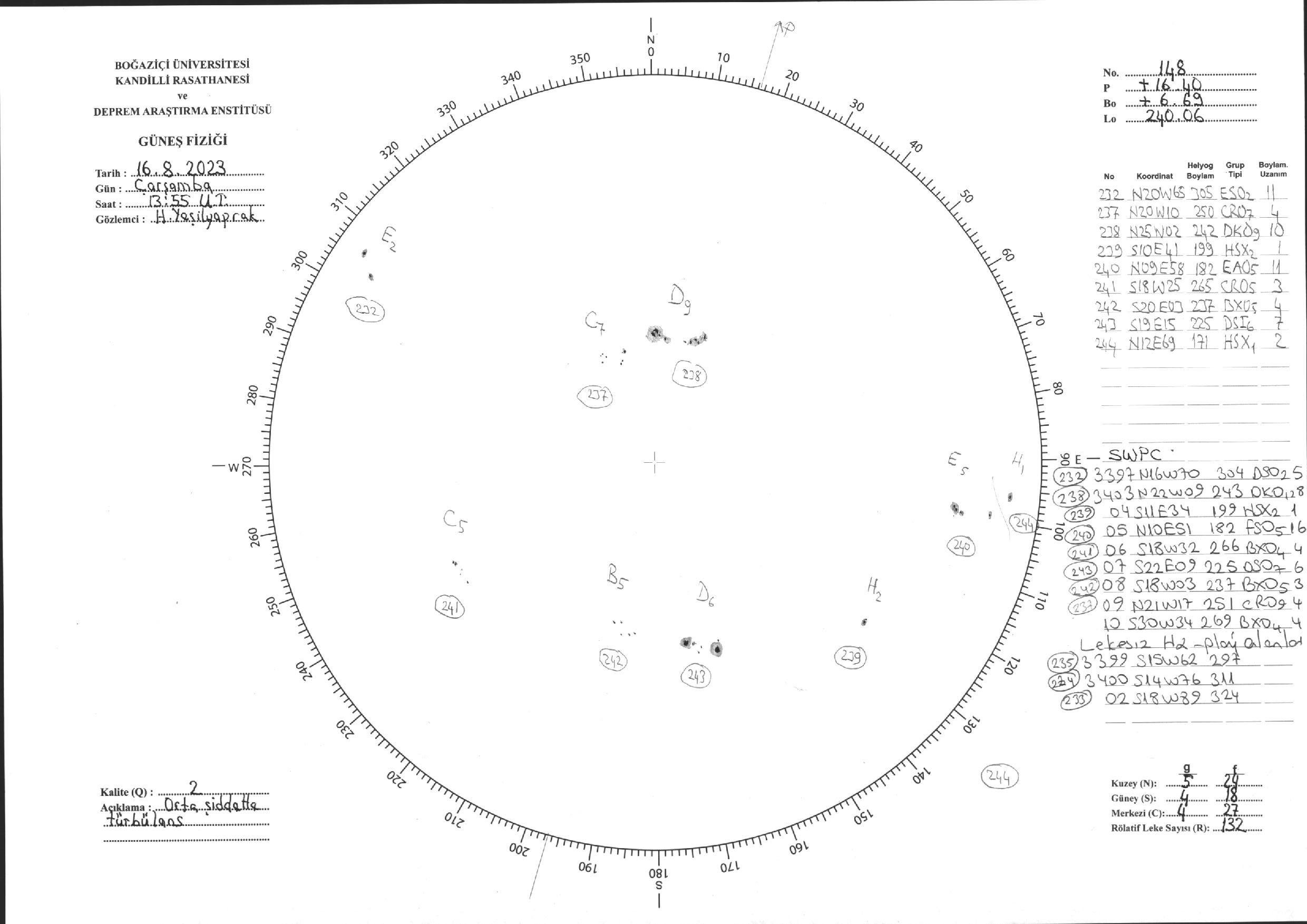 Güneş Lekesi Çizimi - 16.08.2023