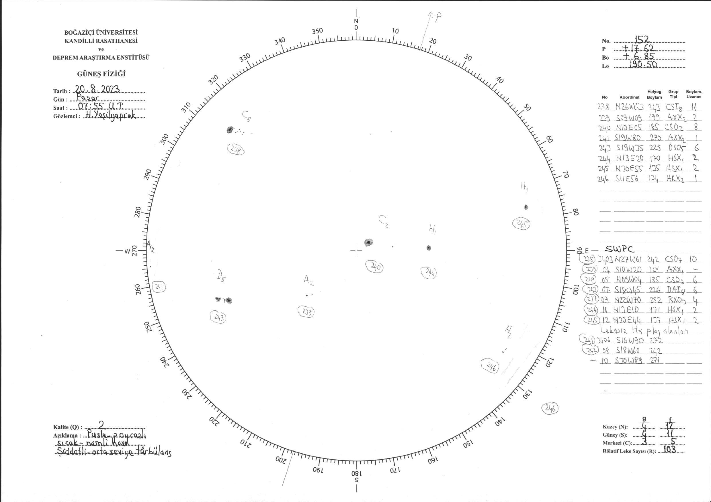 Güneş Lekesi Çizimi - 20.08.2023