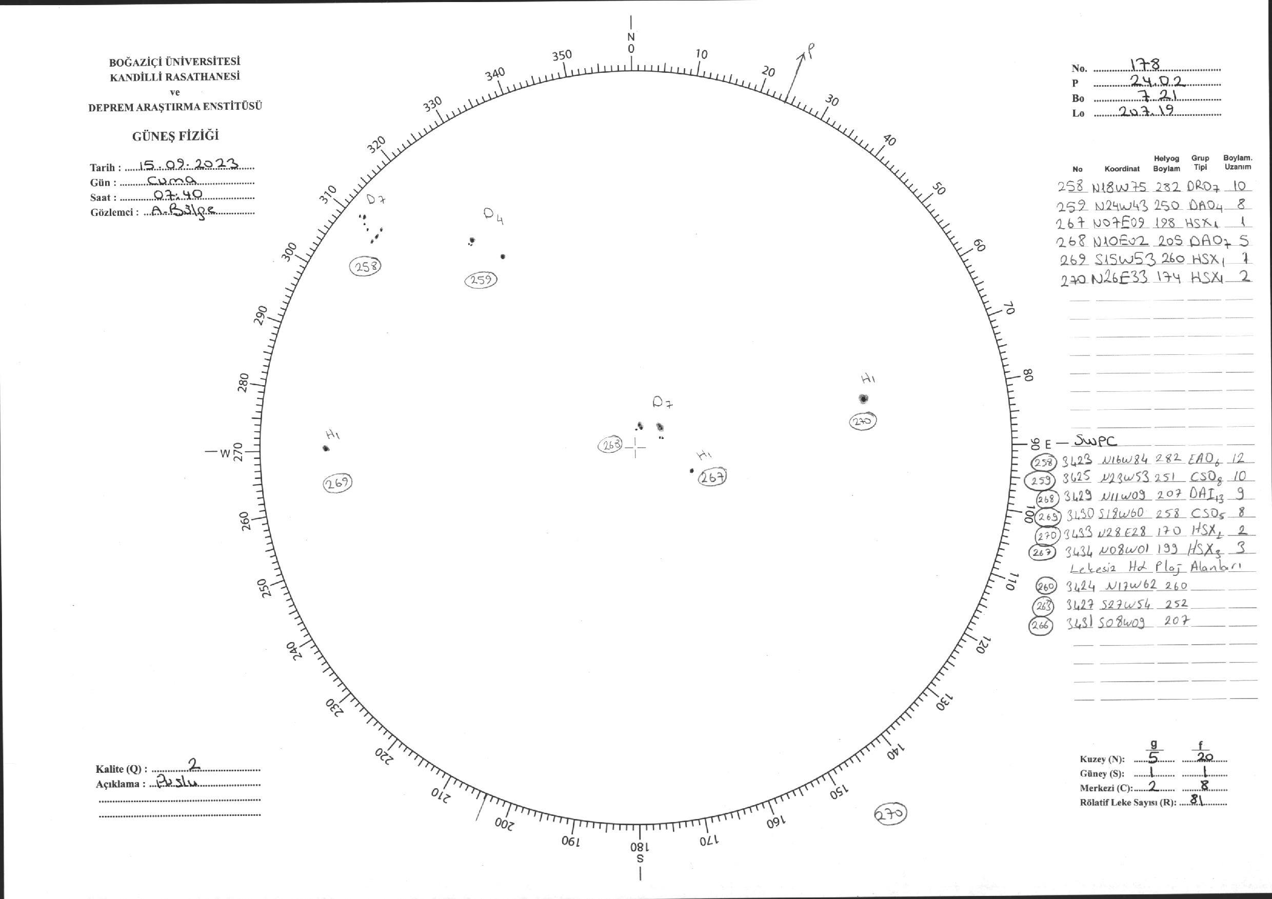 Güneş Lekesi Çizimi - 15.09.2023