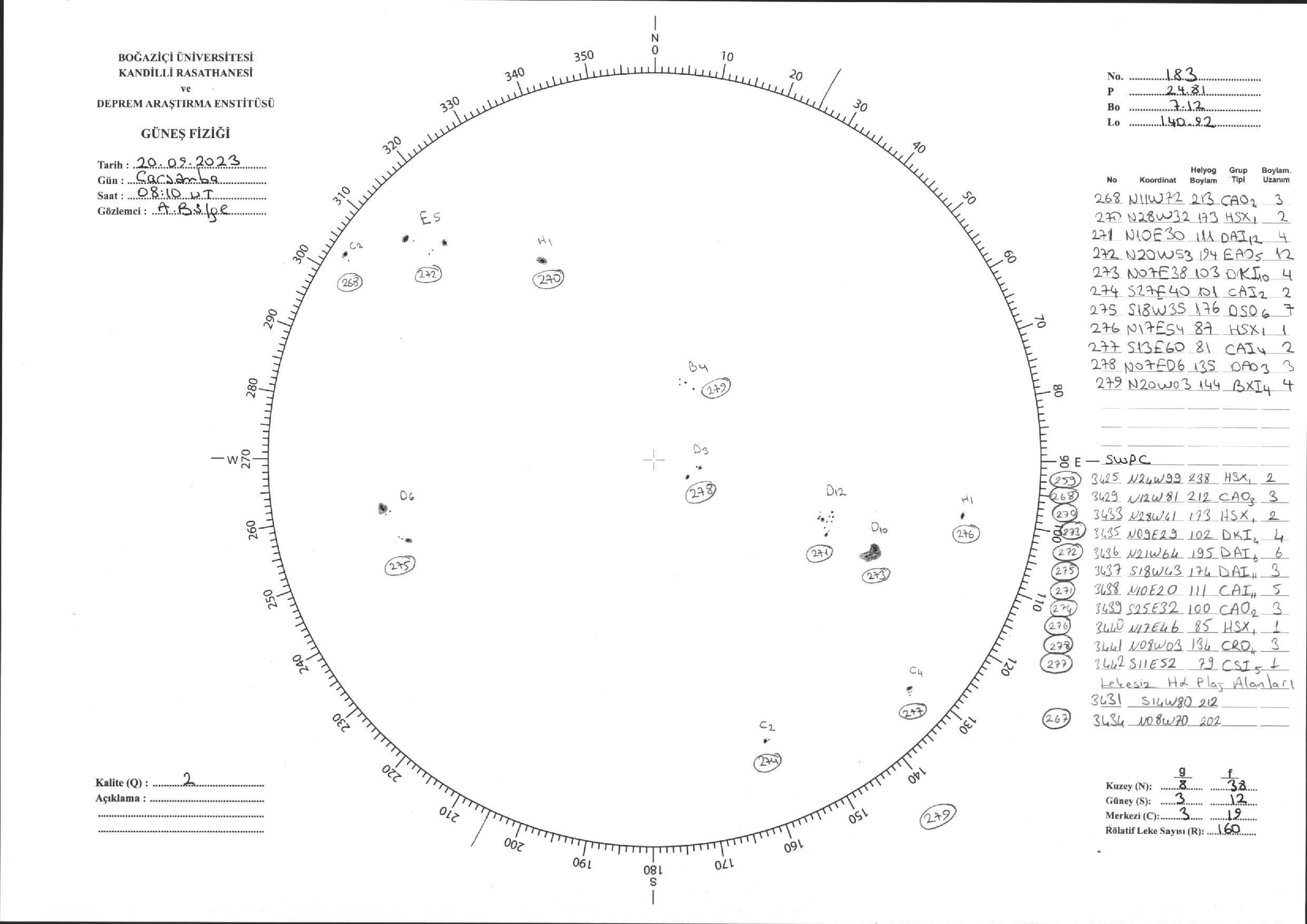 Güneş Lekesi Çizimi - 20.09.2023