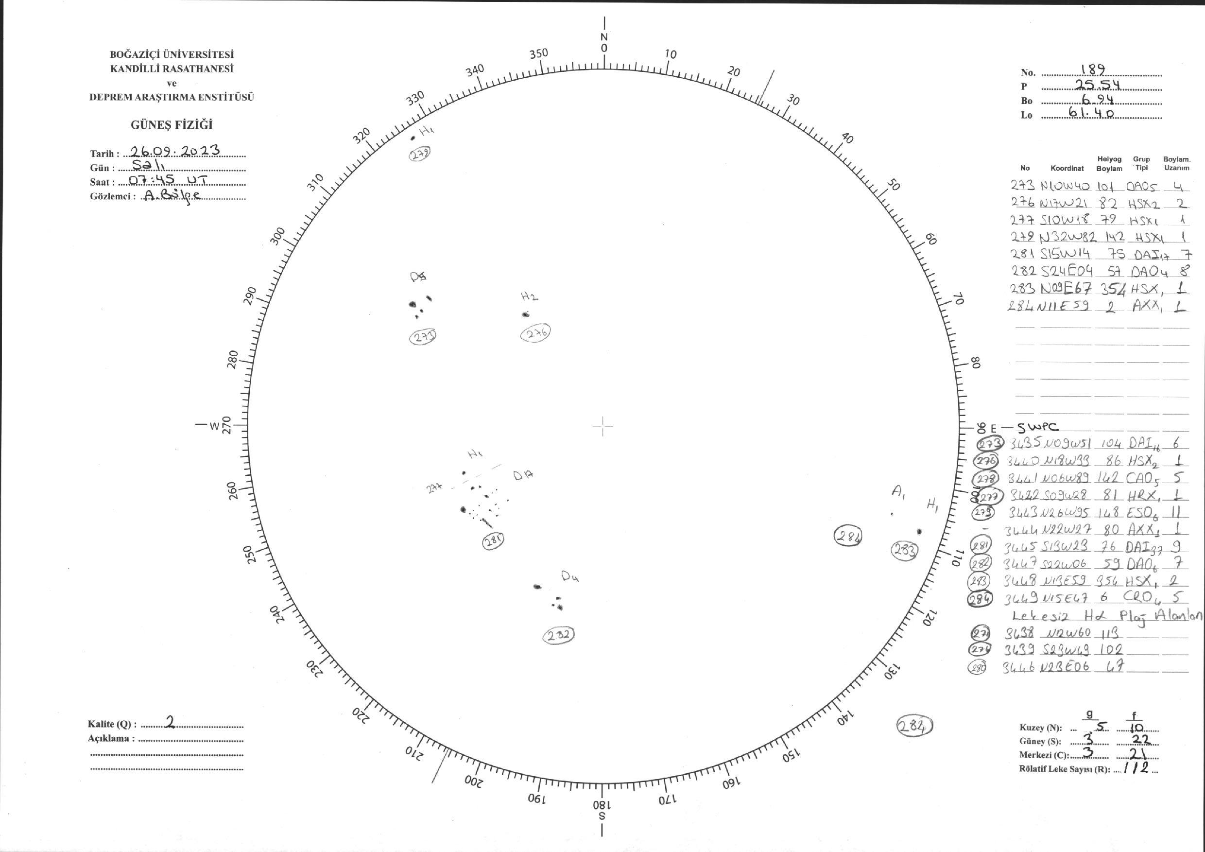 Güneş Lekesi Çizimi - 26.09.2023