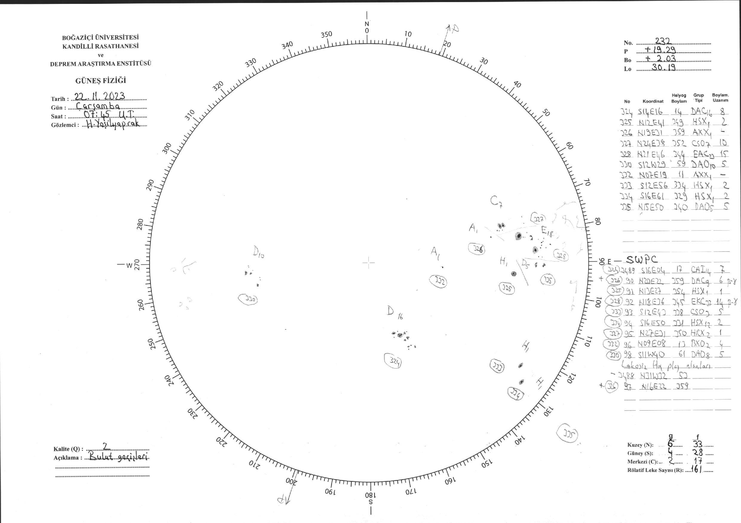 Güneş Lekesi Çizimi - 22.11.2023
