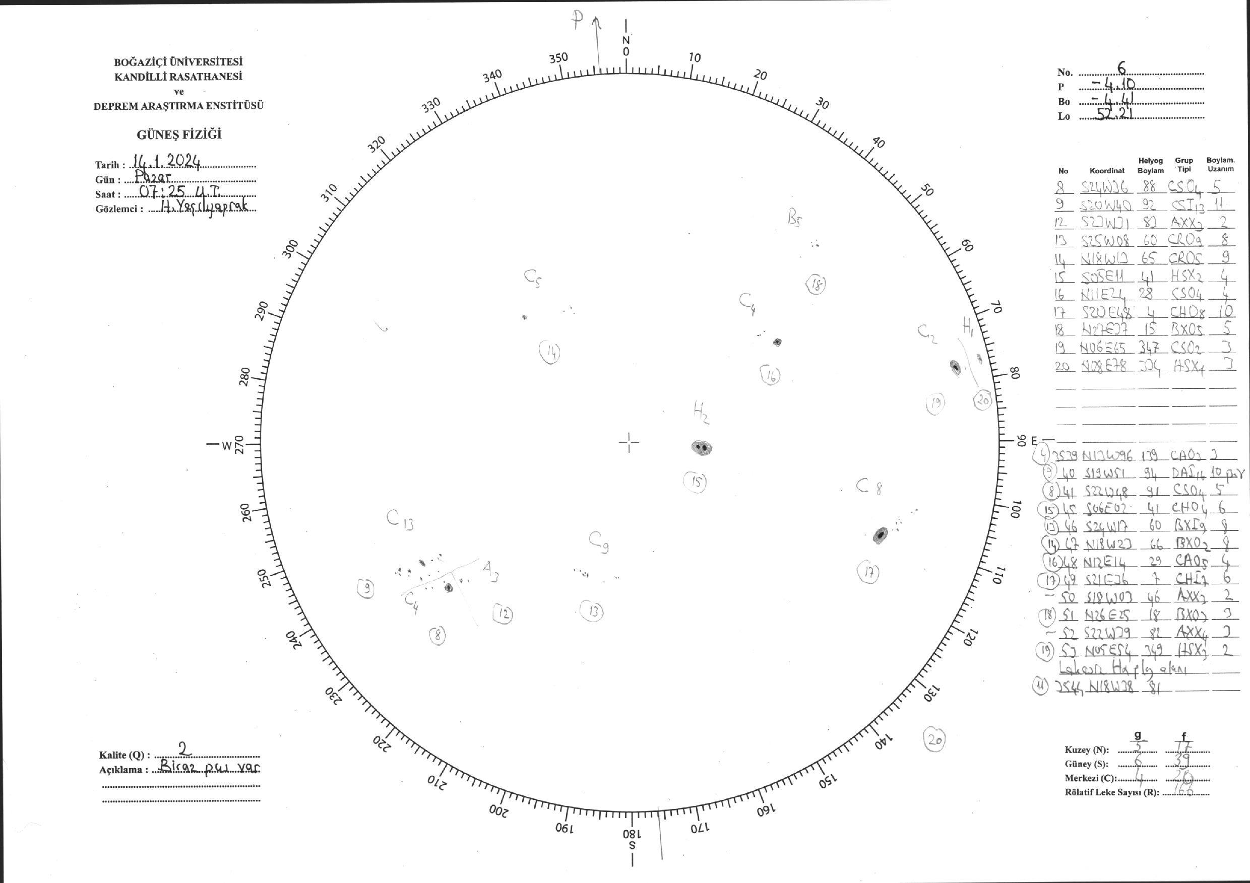 Güneş Lekesi Çizimi - 14.01.2024